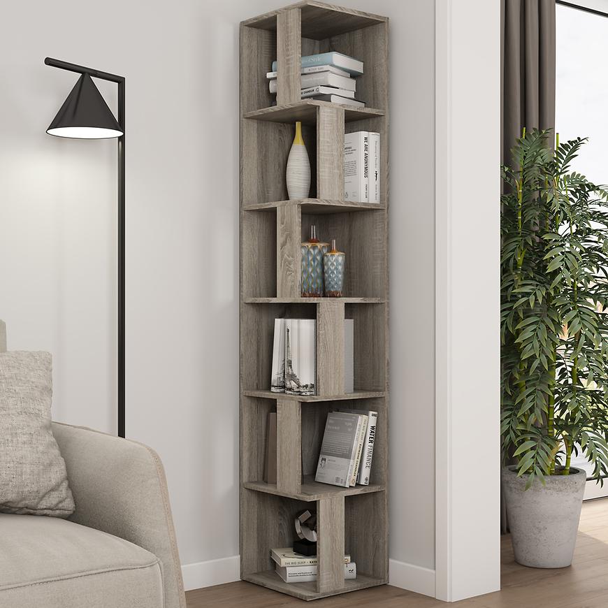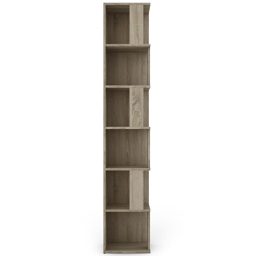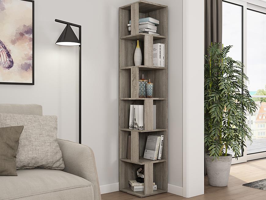 Regał Tower w kolorze sonoma to wyrafinowany mebel, który doskonale łączy funkcjonalność z designerskim wyglądem. Jego korpus został wykończony matową powłoką, nadając mu elegancji i subtelnego uroku. Matowe wykończenie nie tylko dodaje regałowi luksusowego charakteru, ale także zapewnia trwałość, chroniąc powierzchnię przed zarysowaniami i zabrudzeniami.