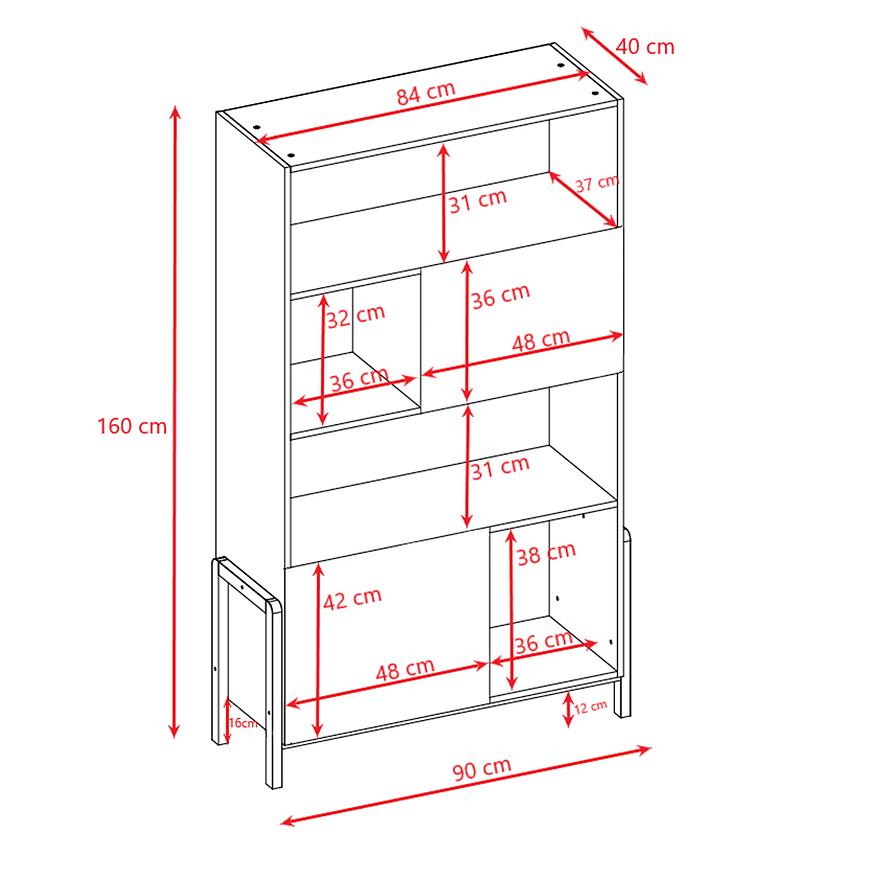 Konstrukcja regału oparta jest na płycie wiórowej laminowanej, co zapewnia trwałość i stabilność. Matowe wykończenie dodaje regałowi subtelnego uroku, jednocześnie sprawiając, że jest łatwy do utrzymania w czystości.