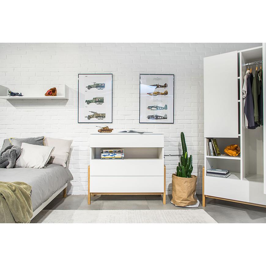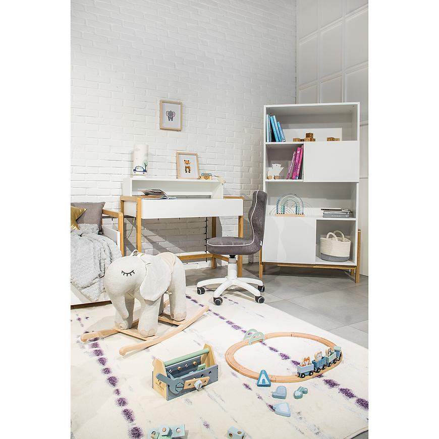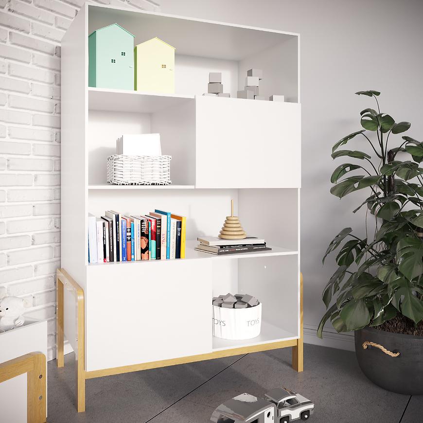 Regał Victor jest dwudrzwiowy, co umożliwia sprytne ukrycie różnorodnych przedmiotów, tworząc jednocześnie uporządkowaną przestrzeń. To idealne miejsce do przechowywania książek, zabawek czy innych drobiazgów, które nadadzą pokoju dziecięcemu porządek i harmonię.