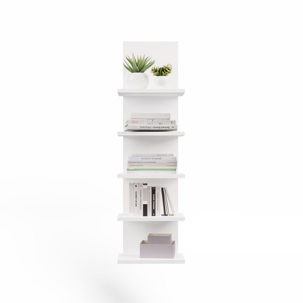 Model R5P został wyposażony w aż pięć otwartych półek, które umożliwiają wygodne przechowywanie i eksponowanie książek, ramek ze zdjęciami, roślin, dekoracji lub akcesoriów codziennego użytku. Otwarta konstrukcja regału ściennego zapewnia szybki dostęp do przechowywanych przedmiotów oraz pozwala na estetyczne wyeksponowanie ulubionych elementów wyposażenia wnętrza. Smukła budowa sprawia, że regał wiszący na książki zajmuje niewiele miejsca, a jednocześnie oferuje sporą przestrzeń do przechowywania. To świetne rozwiązanie do wąskich ścian, przedpokoju, pokoju młodzieżowego lub niewielkiego biura, gdzie każdy centymetr powierzchni jest istotny.