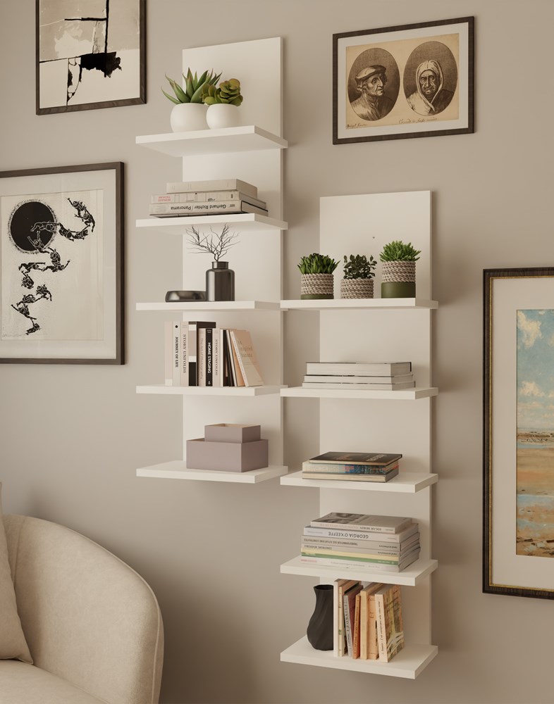 Uniwersalny regał ścienny biały – dopasowanie do różnych aranżacji wnętrz