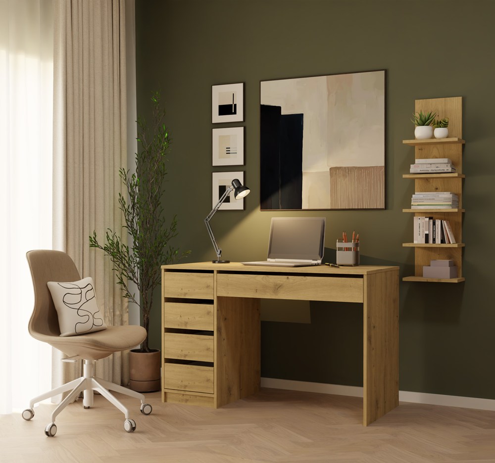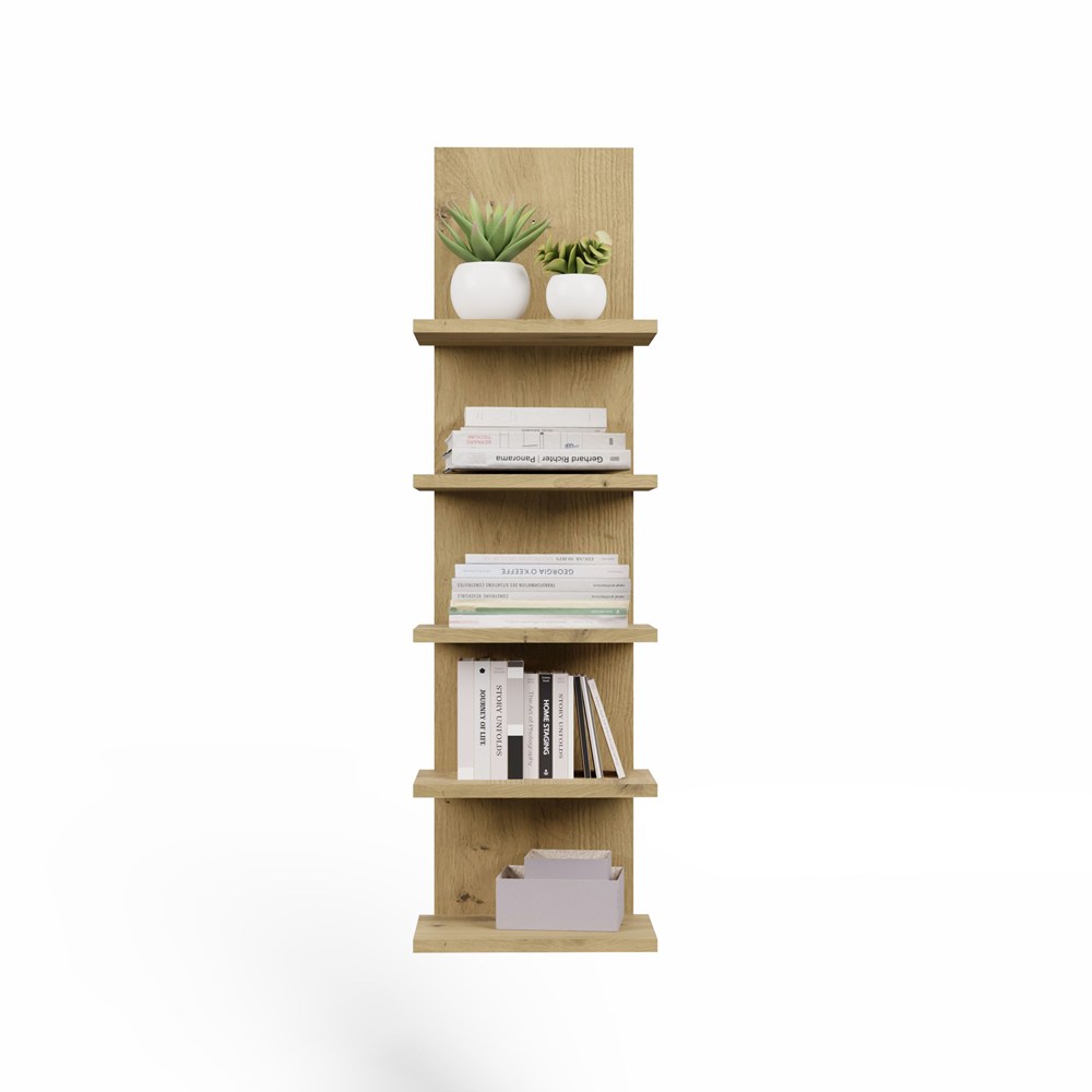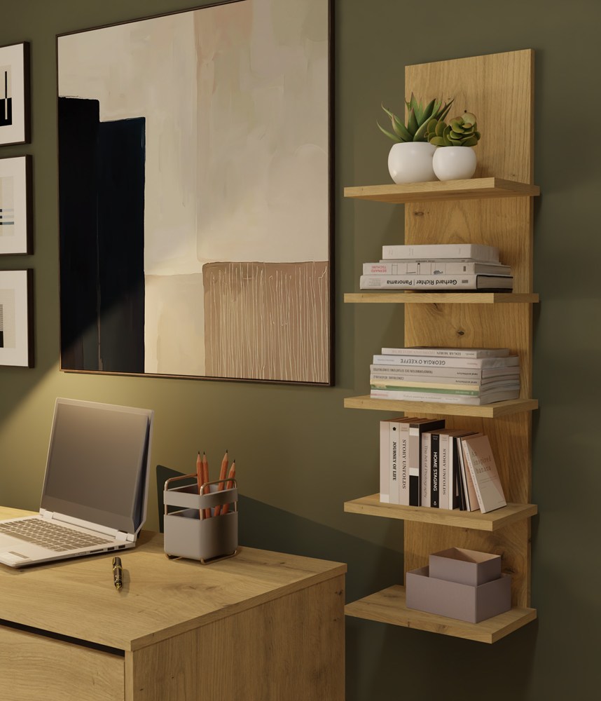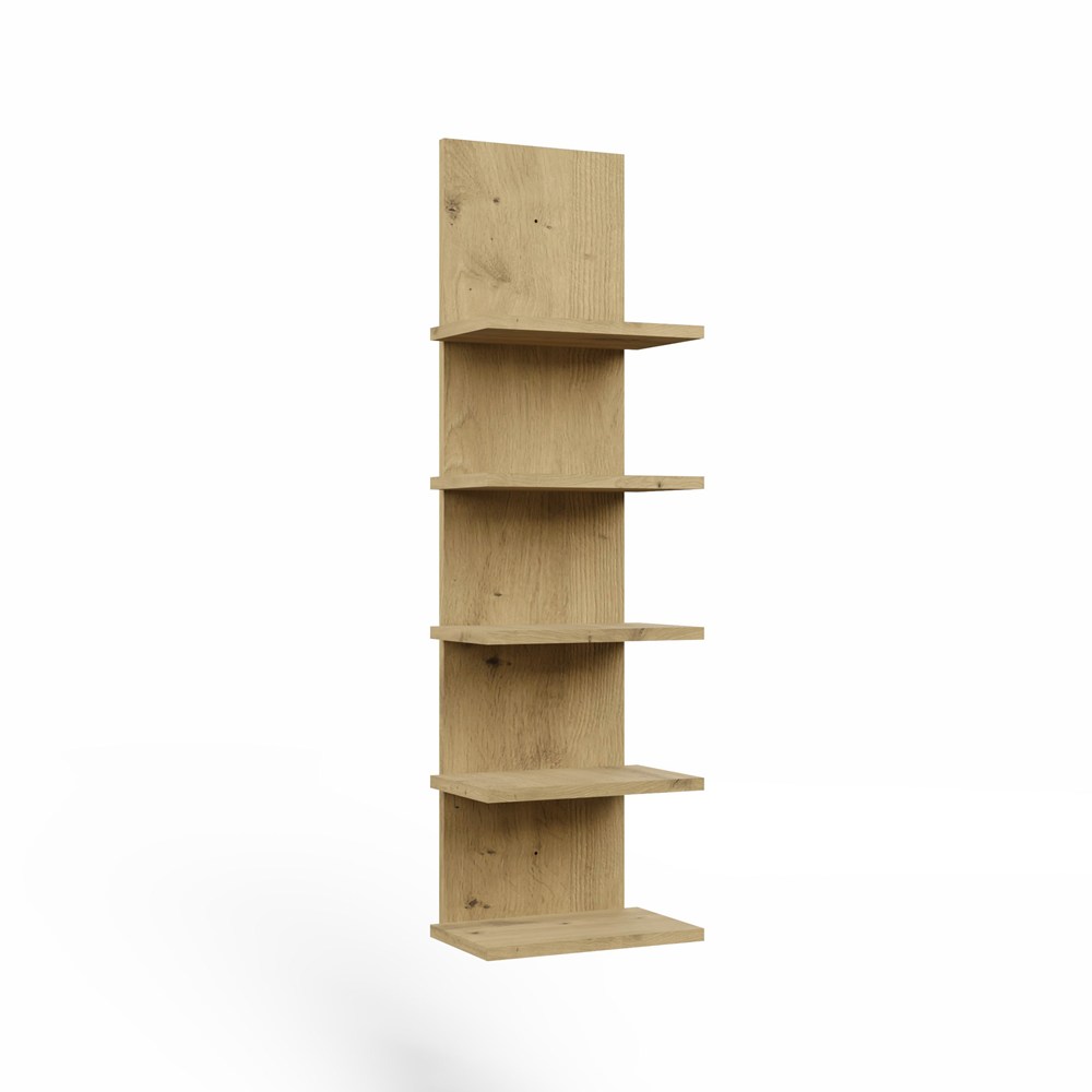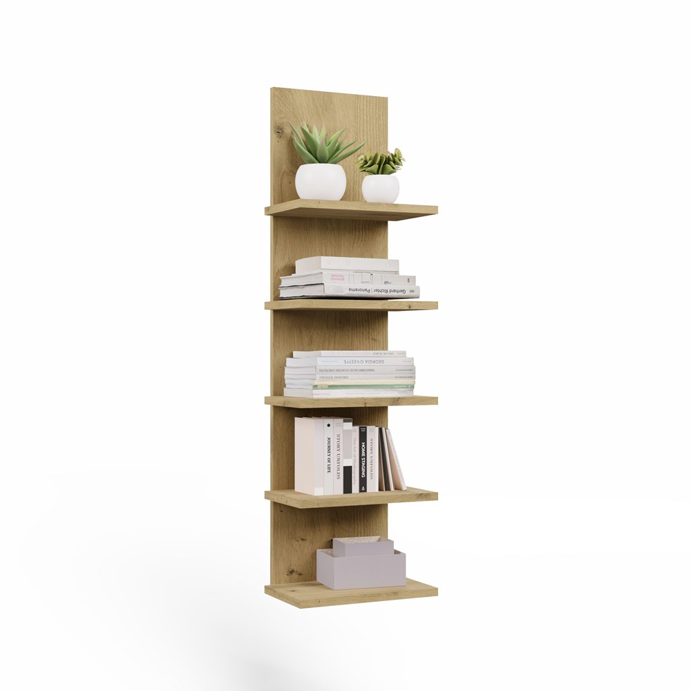 Regał wiszący R5P dąb artisan to propozycja dla osób poszukujących praktycznego i estetycznego mebla do przechowywania. Pionowa forma, pięć pojemnych półek oraz uniwersalny design sprawiają, że regał ścienny doskonale sprawdzi się w wielu pomieszczeniach, pomagając uporządkować przestrzeń i stworzyć atrakcyjną aranżację wnętrza.