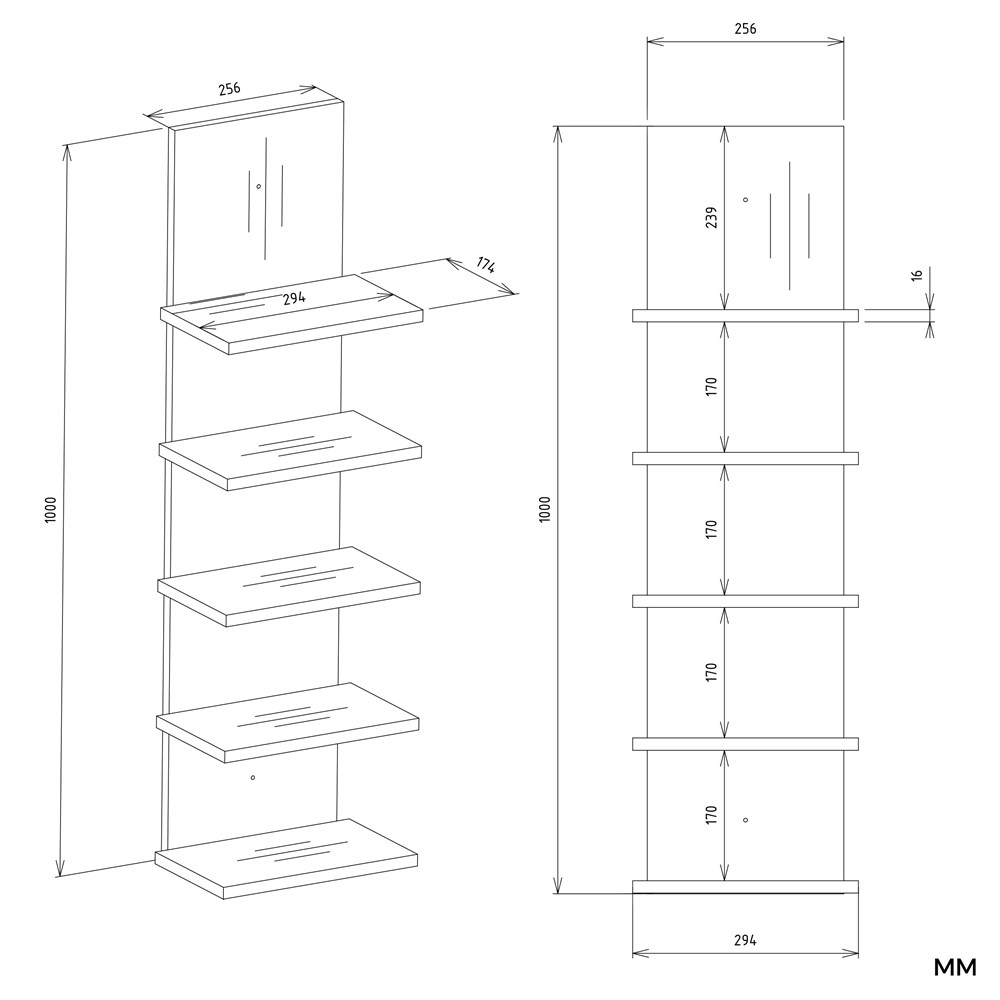 Regał ścienny R5P został zaprojektowany tak, aby zapewnić optymalne wykorzystanie przestrzeni przy zachowaniu kompaktowych wymiarów. Szerokość wynosząca 29,5 cm, wysokość 100 cm oraz głębokość 19 cm pozwalają zamontować mebel nawet na niewielkiej powierzchni ściany. Każda półka posiada maksymalny udźwig do 0,5 kg, co sprawia, że regał doskonale nadaje się do przechowywania lekkich książek, dekoracji oraz akcesoriów. Konstrukcja przeznaczona jest do montażu ściennego, co pozwala zachować porządek i zwiększyć funkcjonalność pomieszczenia. Kołki montażowe nie są dołączone do zestawu, dlatego należy dobrać je odpowiednio do rodzaju ściany.