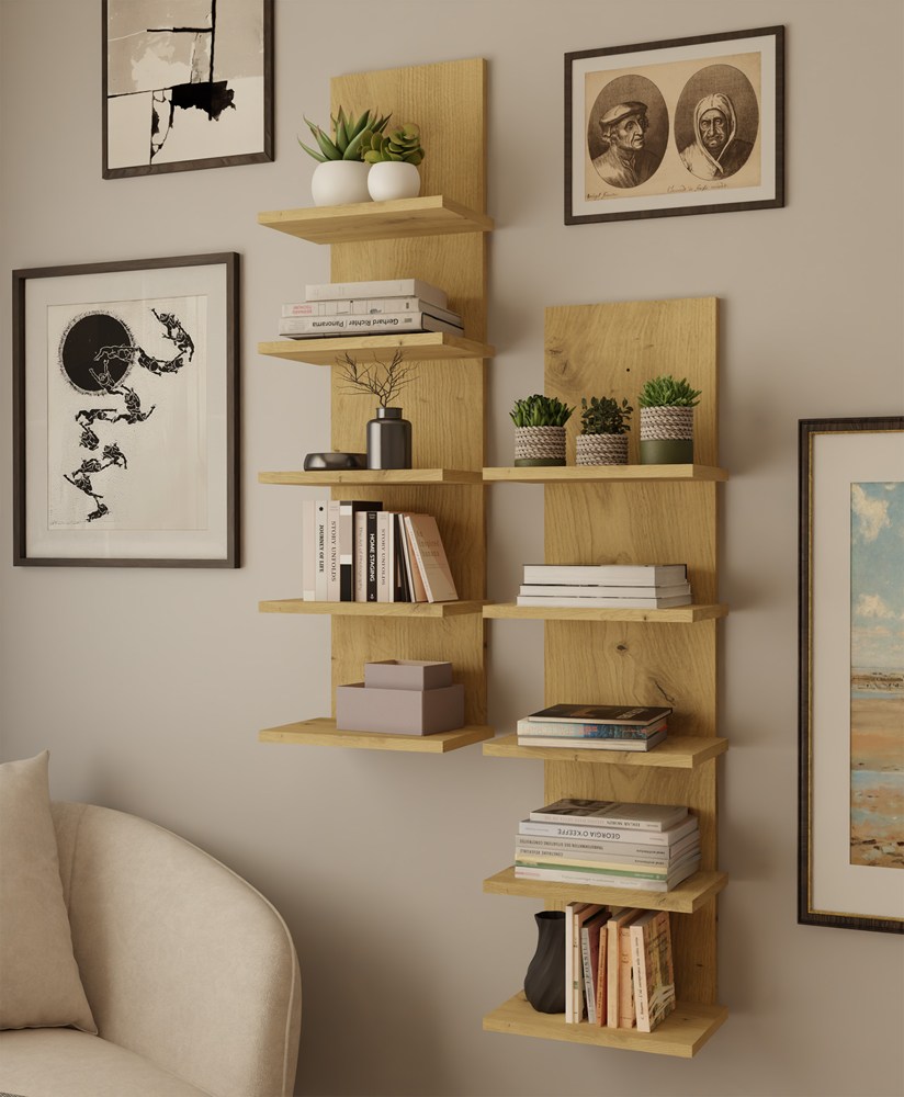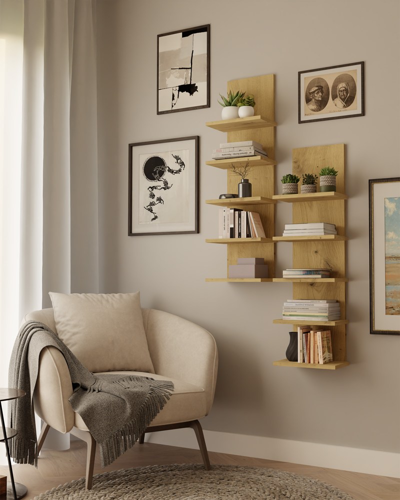 Uniwersalny regał ścienny dąb artisan – dopasowanie do różnych aranżacji wnętrz