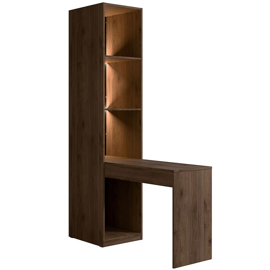 Regał z biurkiem/toaletką Wenecja 25 orzech elegant – nowoczesny regał z płyty laminowanej. Funkcjonalny, matowe wykończenie i elegancki design.