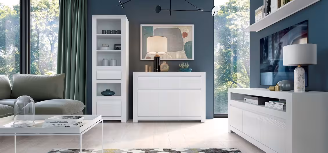 Kolekcja Novi do pokoju dziennego i jadalni łączy nowoczesny design z funkcjonalnymi rozwiązaniami, które sprawiają, że codzienne użytkowanie wnętrza staje się wygodne i uporządkowane. Jasna kolorystyka mebli, subtelne ryflowane listwy i minimalistyczne formy nadają przestrzeni świeży, harmonijny charakter. Kolekcja pozwala na stworzenie spójnego wystroju w salonie i jadalni, łącząc elegancję z praktycznością.