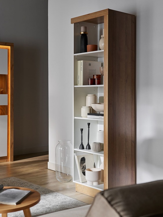 W skład zestawu wchodzą m.in.: witryna wysoka, komoda z szufladami, stolik, półka, niska witryna oraz wersja witryny ze szkłem. Istnieje możliwość rozbudowy zestawu o dodatkowe bryły dostępne na zamówienie, co daje szerokie możliwości aranżacyjne.