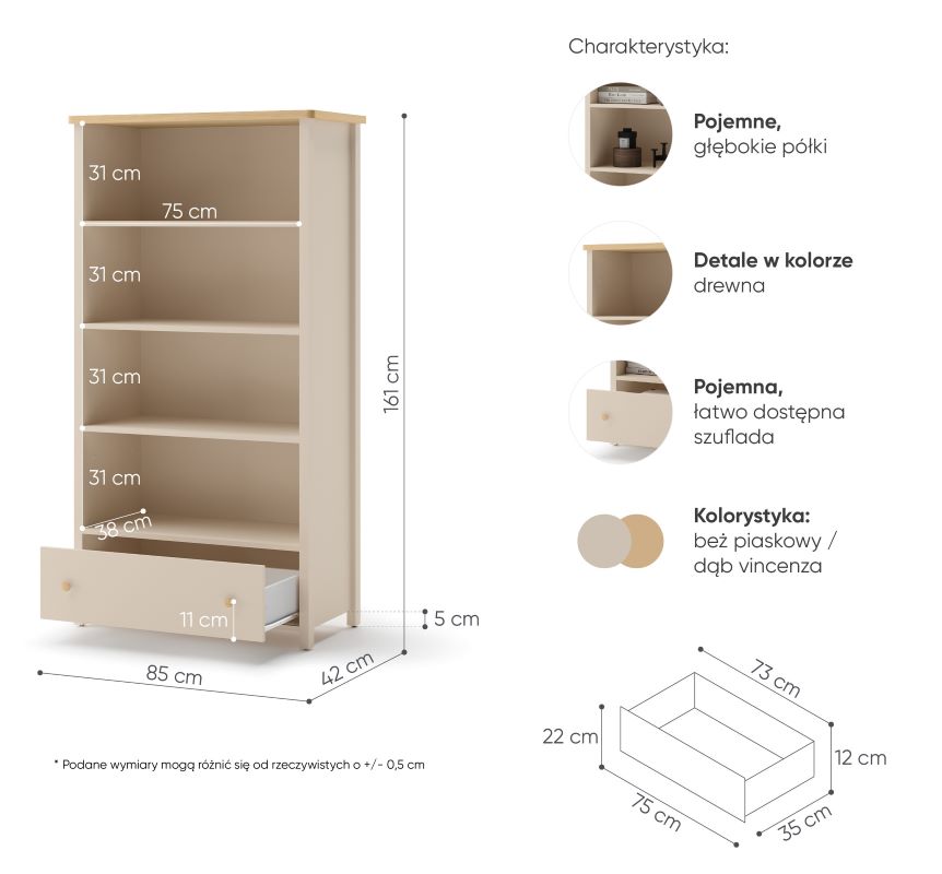 - Regał z szufladą Story SO-02 beż piaskowy/dąb vincenza