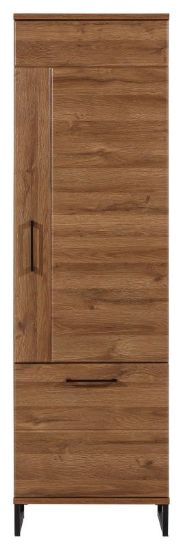 Regał zamknięty L/P IVO IV-8 to nowoczesny mebel, który można wykorzystać w salonie ale także w sypialni czy przedpokoju. Wnętrze regału kryje praktyczne wnęki przedzielone półkami, które pomieszczą wszystkie potrzebne rzeczy, a dzięki zamykanym drzwiczkom ukryjesz to, co niekoniecznie chcesz zostawiać na widoku. Geometryczny wzór na froncie mebla, czarne uchwyty i zjawiskowa faktura drewna łączy elegancką klasykę z nutką industrialnego stylu. Całość osadzona została na charakterystycznych czarnych nogach, które nie tylko podkreślają eleganckie wykończenie regału, ale jednocześnie nadają mu lekkości. Regał idealnie sprawdzi się w kompozycji z innymi bryłami z serii IVO lub jako pojedynczy mebel, który można dopasować do własnej aranżacji pomieszczenia.