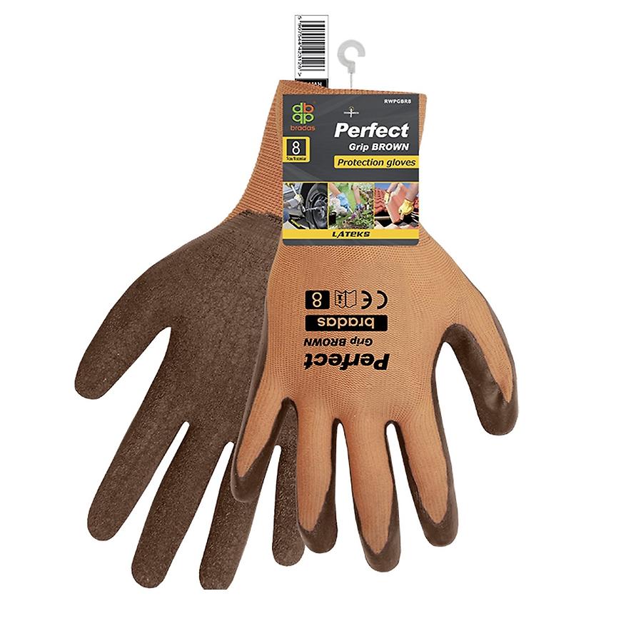 Rękawice ochronne Perfect – brązowe, rozmiar 8 – solidne rękawice robocze, oferujące wygodę i ochronę w codziennych pracach. Wykonane z trwałych materiałów, zapewniają odpowiednią przyczepność, odporność na zabrudzenia i komfort noszenia. Idealne do użycia w ogrodzie, warsztacie i podczas lekkich prac mechanicznych.