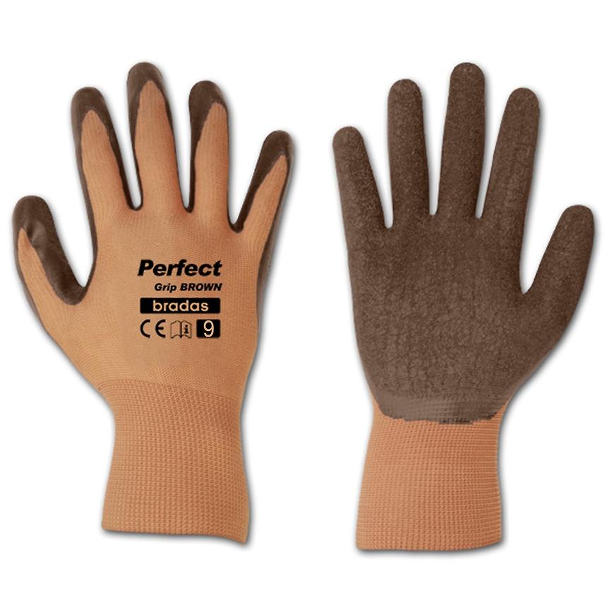 Rękawice ochronne Perfect – brązowe, rozmiar 9 – solidne rękawice robocze stworzona z myślą o wygodzie i ochronie podczas codziennych zadań. Wykonane z wytrzymałych materiałów, zapewniają pewny chwyt i odporność na zabrudzenia. Idealne do prac ogrodowych, warsztatowych i porządkowych w wymagających warunkach.