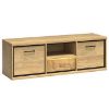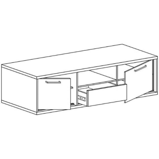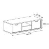 Szafka RTV Mediolan M12 ma szerokość 139 cm, głębokość 41 cm oraz wysokość 47,5 cm, co pozwala na ustawienie jej zarówno w przestronnych salonach, jak i w mniejszych pomieszczeniach. Konstrukcja obejmuje 2 drzwi oraz 1 szufladę, które zapewniają wygodne miejsce do przechowywania sprzętu RTV, konsoli do gier, pilotów oraz innych akcesoriów multimedialnych.