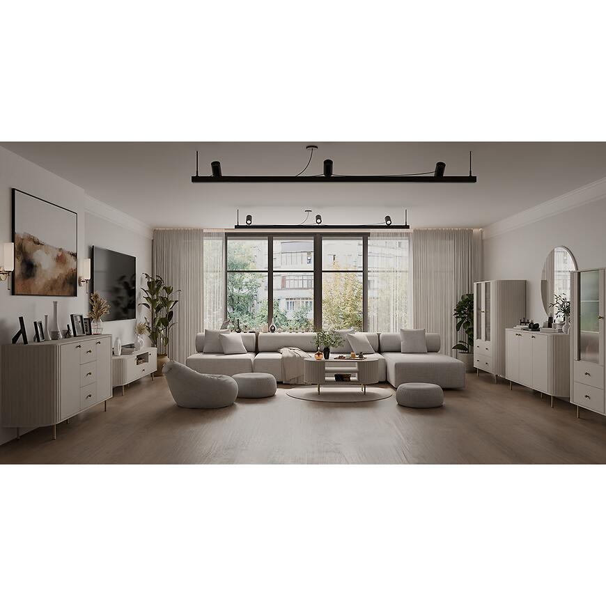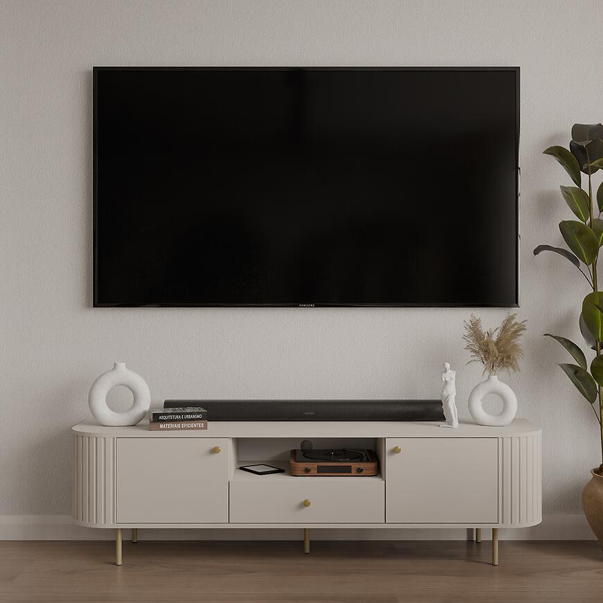 Szafka RTV Ovalio 321 2F 1S beż piaskowy (kaszmir) to model, który łączy harmonijne wzornictwo z przemyślanym układem wnętrza. Jej wymiary — wysokość 50 cm, szerokość 180,6 cm oraz głębokość 42,3 cm — pozwalają na wygodne ustawienie telewizora oraz niezbędnych urządzeń multimedialnych. Utrzymana w kolekcji OVALIO i stylu nowoczesnym, idealnie wpisuje się w aktualne trendy związane z minimalistycznym i uporządkowanym wyposażeniem wnętrz.