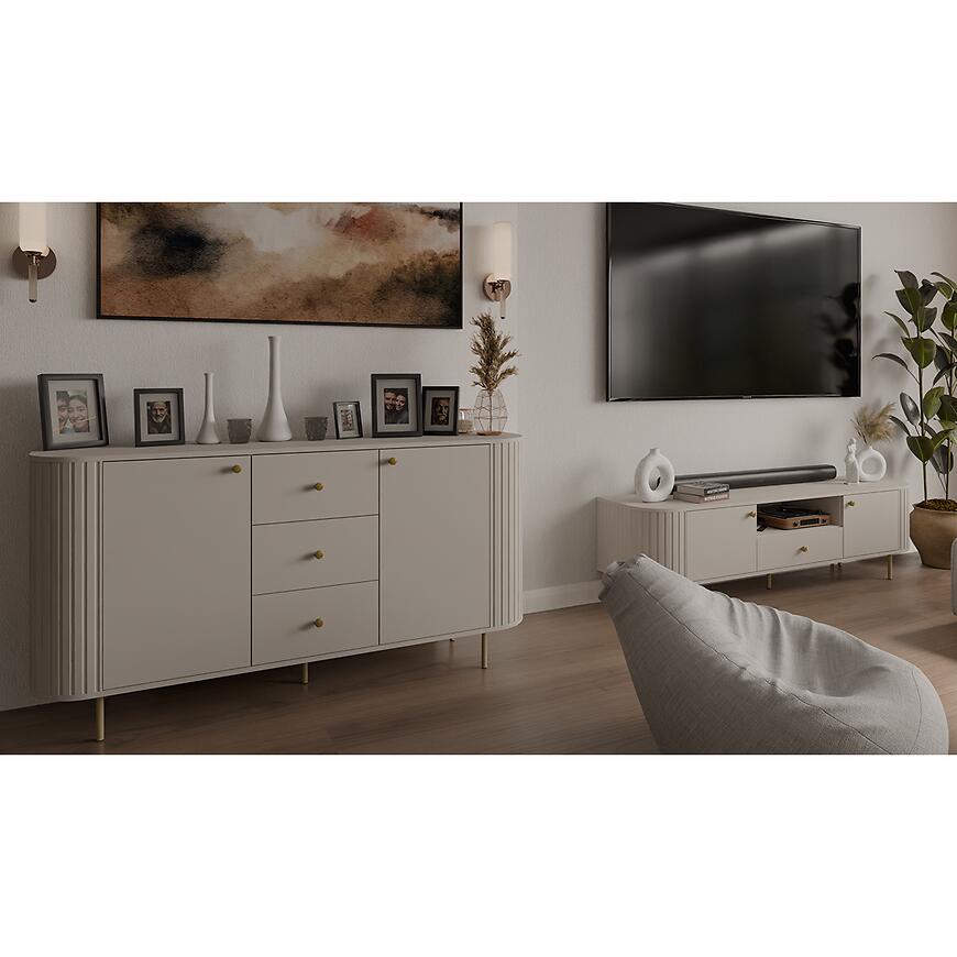 Szafka RTV Ovalio 321 – beż piaskowy (kaszmir) i matowe wykończenie