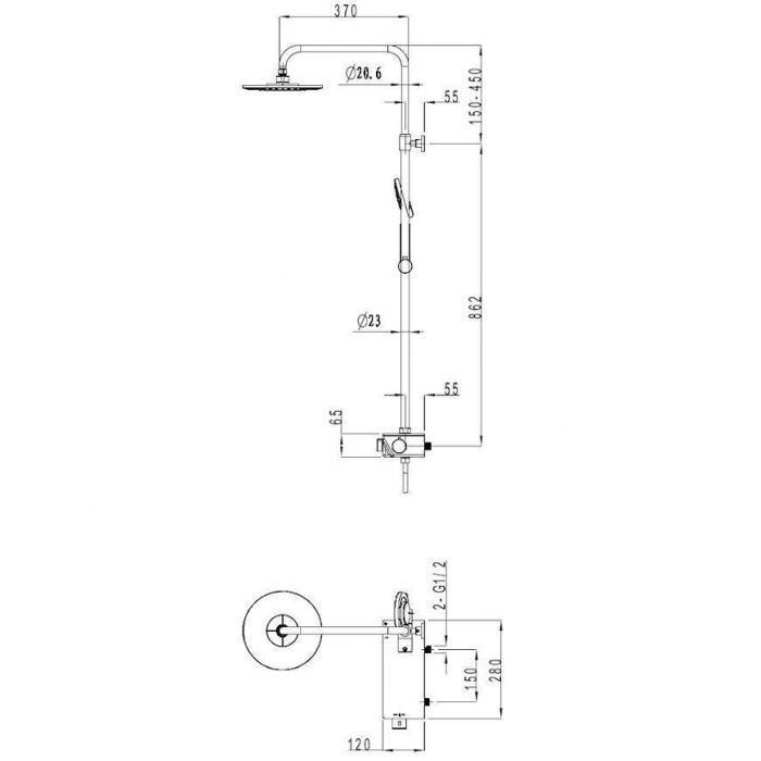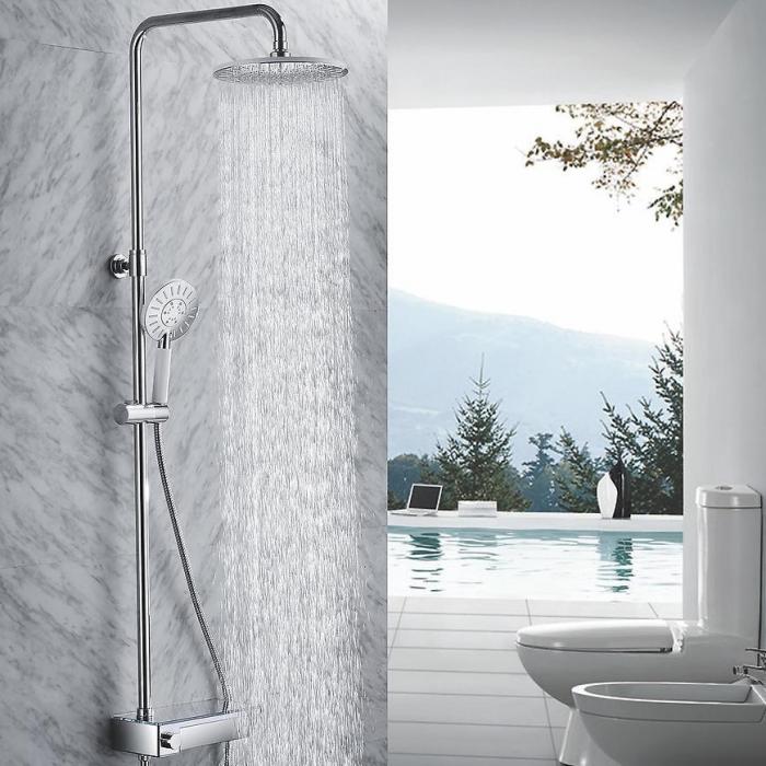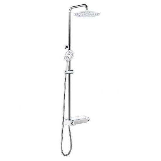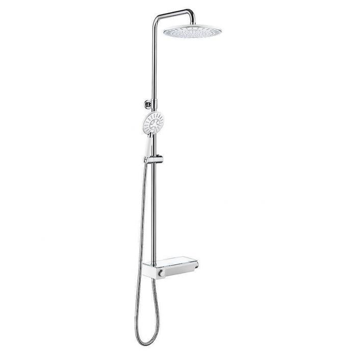 Satis system natryskowy z deszczownicą z baterią termostatyczną. Powierzchnia wykonana z tworzywa sztucznego i metalu. Kolumna posiada rączkę natryskową, z której wydobywać się mogą 3 rodzaje strumieni. Kolumnę należy zamontować naściennie.
