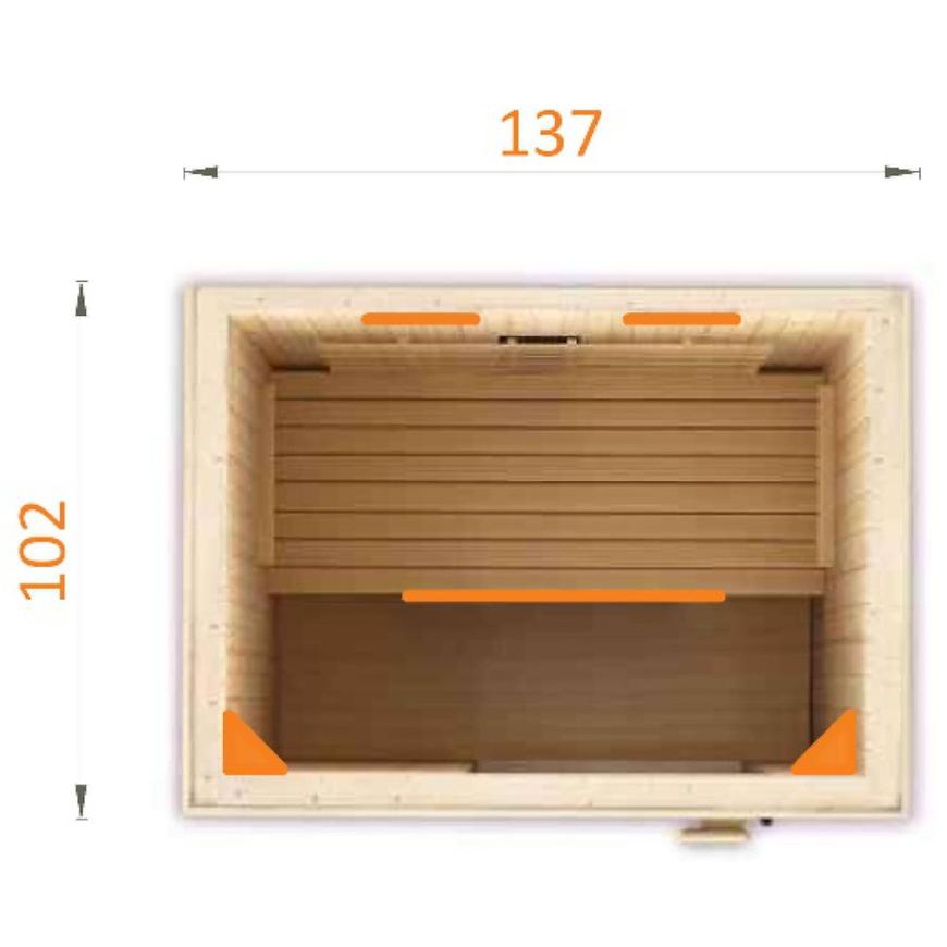 Sauna jest wyposażona w pięć promienników ciepła o mocy 2050 W, co pozwala na szybkie i skuteczne osiągnięcie odpowiedniej temperatury do relaksu i odprężenia. Promieniowanie podczerwone przenika skórę, rozluźnia mięśnie, pobudza krążenie krwi i wspomaga detoksykację organizmu.