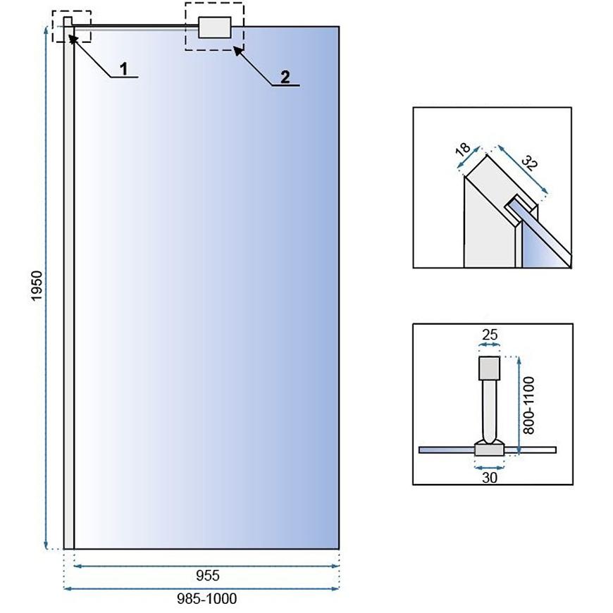 Ścianka Walk-in Aero "N" 100x195 chrom Rea K7551 marki REA to nowoczesna ścianka typu Walk-in o wymiarach 100x195 cm, wykonana z hartowanego, bezbarwnego szkła o grubości 8 mm. Wyposażona w otwarty chromowany profil z regulacją przyścienną oraz wspornik o długości 110 cm, posiada powłokę ułatwiającą czyszczenie, co zapewnia wygodę użytkowania. Waga ścianki wynosi 42 kg, a produkt należy do serii AERO.