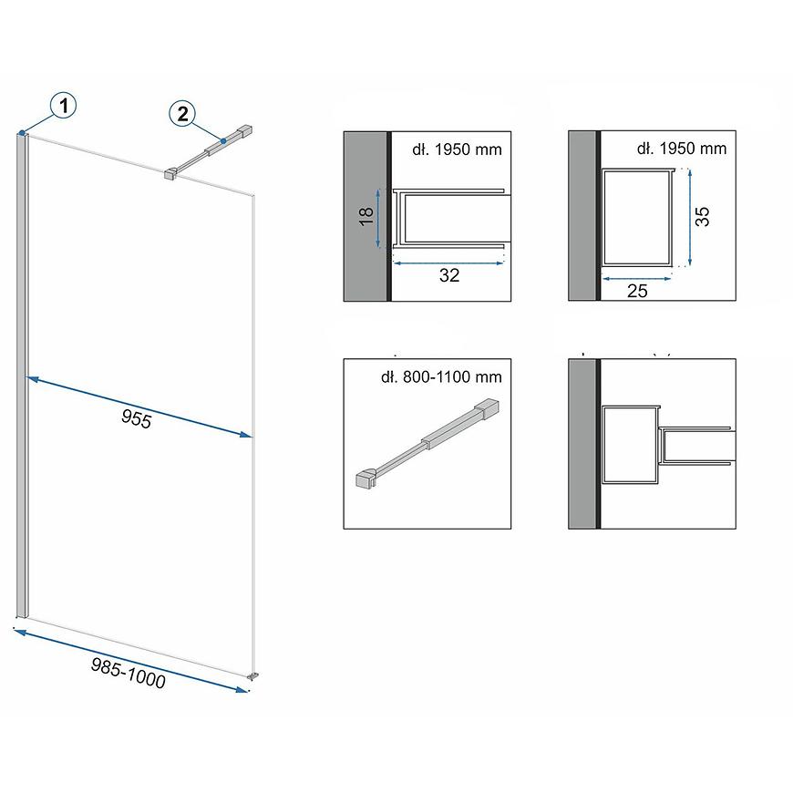 Wprowadź do swojej łazienki nowoczesny i stylowy akcent z ścianką Walk-in Aero Rea K6596 100x195 Black. Wykonana z hartowanego szkła o grubości 8 mm, zapewnia trwałość, bezpieczeństwo i elegancki wygląd, podkreślony czarnym profilem. Ścianka o wymiarach 100 × 195 cm wyposażona jest w powłokę ułatwiającą czyszczenie, regulację na profilu przyściennym oraz długi wspornik 110 cm, co gwarantuje stabilność i wygodę użytkowania. Otwarty rodzaj profilu podkreśla minimalistyczny, nowoczesny design. Marka REA, seria AERO, to gwarancja jakości, funkcjonalności i elegancji w Twojej łazience.