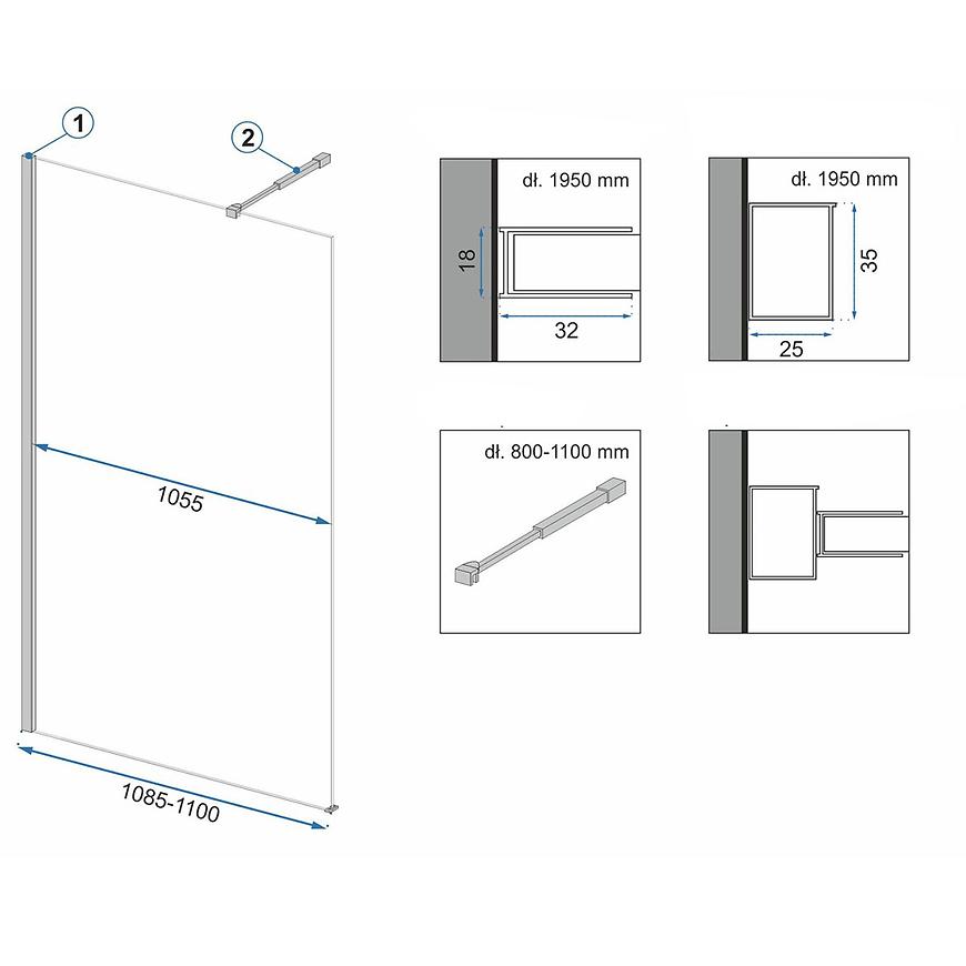 Wzbogać swoją łazienkę o nowoczesny i elegancki element z ścianką Walk-in Aero Rea K6597 110x195 Black. Wykonana z hartowanego szkła o grubości 8 mm, gwarantuje trwałość, bezpieczeństwo i stylowy wygląd, podkreślony czarnym profilem. Ścianka o wymiarach 110 × 195 cm wyposażona jest w powłokę ułatwiającą czyszczenie, regulację na profilu przyściennym oraz wspornik o długości 110 cm, zapewniający stabilność i komfort użytkowania. Otwarty rodzaj profilu nadaje minimalistyczny, nowoczesny charakter. Marka REA, seria AERO, to połączenie jakości, funkcjonalności i elegancji w Twojej łazience.