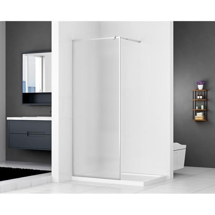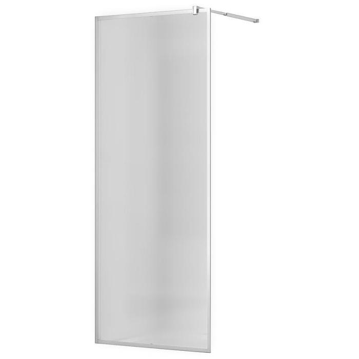 Ścianka Walk- in w kolorze profilu chrom z serii Blur- wypełniona szkłem hartowanym o strukturze kratki.