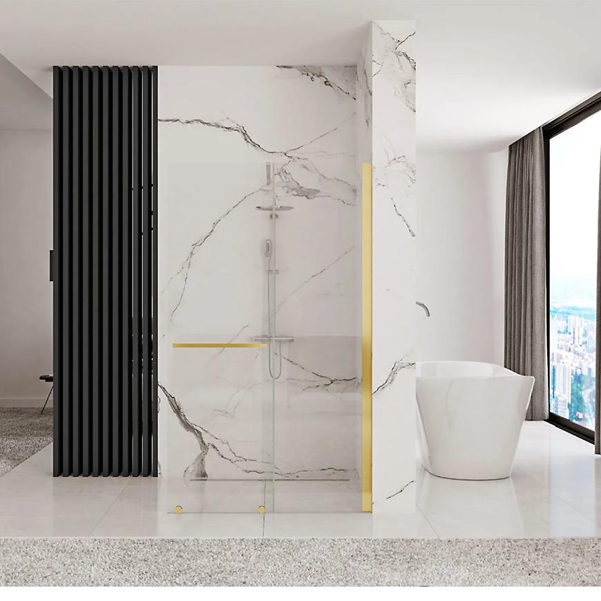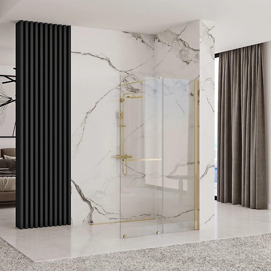 Ścianka Walk-in Cortis Rea K8485 120x200 gold to stylowa i nowoczesna ścianka o wymiarach 120x200 cm, wykonana z hartowanego, bezbarwnego szkła o grubości 6 mm. Posiada otwarty złoty profil z regulacją przyścienną oraz powłoką ułatwiającą czyszczenie, co zapewnia wygodę i elegancki wygląd łazienki. Stabilność konstrukcji zapewnia wspornik o długości 120 cm, a całość waży 26 kg. Produkt należy do serii CORTIS, łącząc nowoczesny design z praktycznym i trwałym rozwiązaniem do każdej łazienki.
