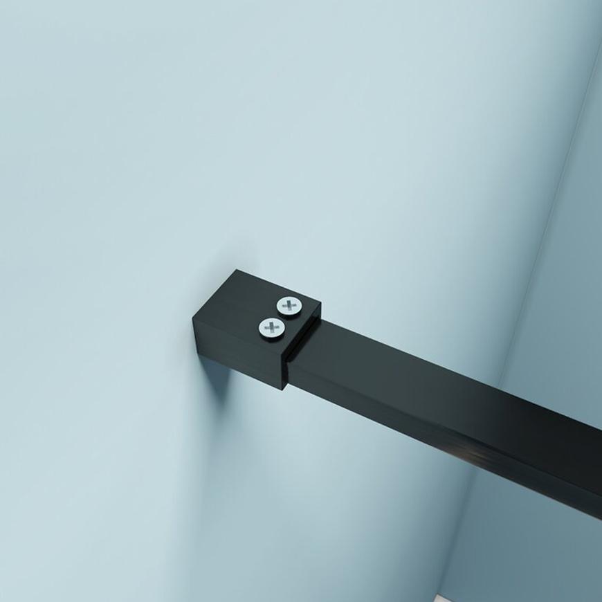Ścianka prysznicowa Walk-In Metro 90x195 Black marki AQUA MERCADO to nowoczesne rozwiązanie do łazienki o wymiarach 90x195 cm. Wykonana jest z hartowanego szkła o grubości 6 mm w kolorze bezbarwnym, osadzonego w czarnym, zamkniętym profilu z możliwością regulacji przyściennej. Powłoka ułatwiająca czyszczenie zapewnia wygodę użytkowania, a solidny wspornik o długości 99,5 cm gwarantuje stabilność całej konstrukcji. Produkt waży 28 kg i należy do serii METRO, łącząc minimalistyczny design z trwałością i funkcjonalnością.