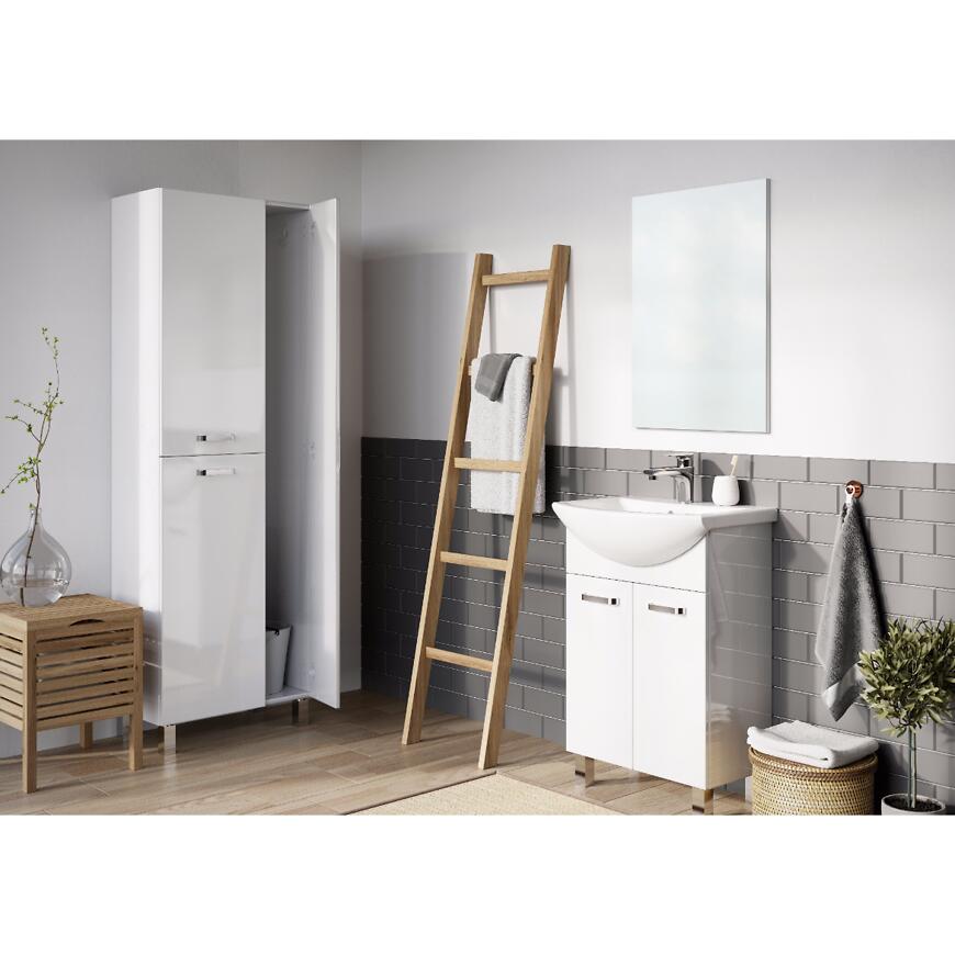 Szafka łazienkowa z umywalką z kolekcji UNO to nowoczesne i funkcjonalne rozwiązanie, które doskonale sprawdzi się w każdej łazience, łącząc elegancki design z praktycznym zastosowaniem. Wykonana z trwałej płyty wiórowej i wykończona lakierem w ponadczasowym białym kolorze, prezentuje się niezwykle estetycznie, a jednocześnie jest łatwa w utrzymaniu czystości. Model posiada dwudrzwiową konstrukcję z systemem samodomykania, który podnosi komfort użytkowania i gwarantuje ciche domykanie frontów.
