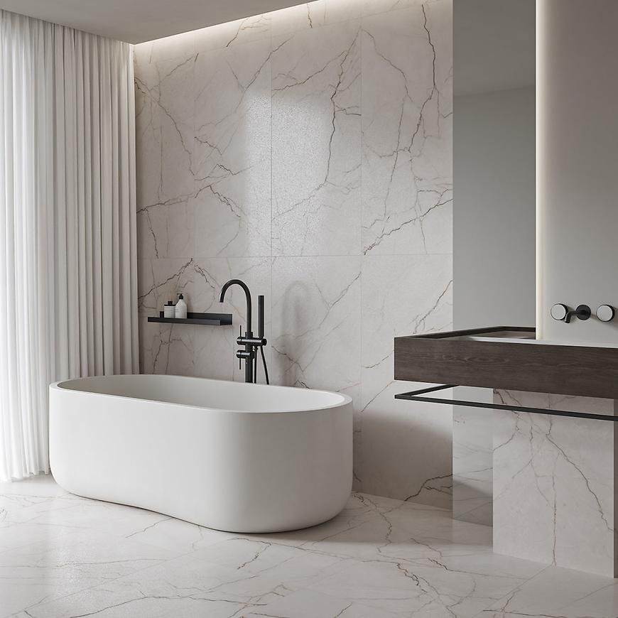 Płytka bazowa o eleganckim wzornictwie imitującym naturalny kamień to idealne rozwiązanie do aranżacji zarówno wnętrz, jak i przestrzeni zewnętrznych. Dzięki swojej mrozoodpornej konstrukcji sprawdzi się doskonale w każdych warunkach atmosferycznych, a półpolerowana powierzchnia nadaje przestrzeni subtelny połysk i wyjątkową estetykę. Płytka została rektyfikowana, co umożliwia precyzyjne układanie z minimalną fugą, zapewniając efekt jednolitej i harmonijnej podłogi lub ściany. Uniwersalne zastosowanie sprawia, że produkt jest doskonałym wyborem do salonu, łazienki, tarasu czy przestrzeni komercyjnych, łącząc trwałość z ponadczasowym designem inspirowanym naturalnym kamieniem.