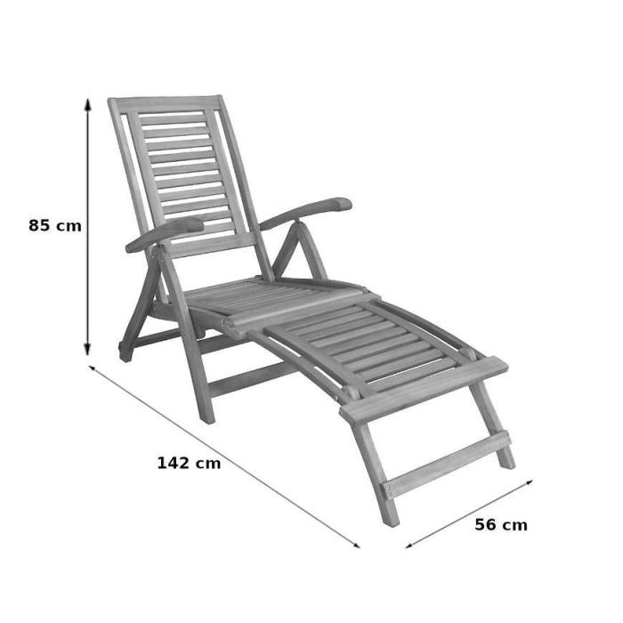Leżak ogrodowy wykonany z drewna akacjowego, posiada regulowany podnóżek i oparcie. Leżak idealnie sprawdzi się w każdym ogrodzie, na plaży czy w innej formie wypoczynku.