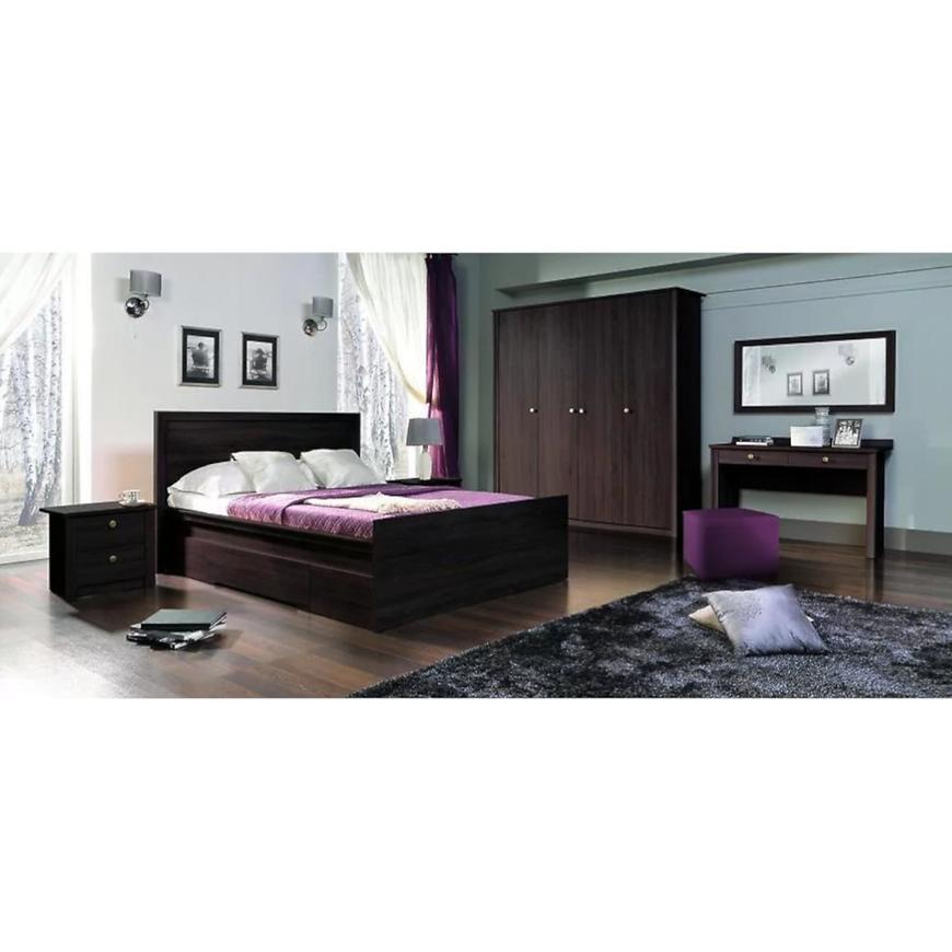 Kolor frontów i korpusu w ciemnym drewnopodobnym odcieniu oraz matowe wykończenie frontów i korpusu nadają meblom elegancji i nowoczesności. Fronty zostały wykonane z płyty wiórowej laminowanej, co zapewnia trwałość i wytrzymałość.