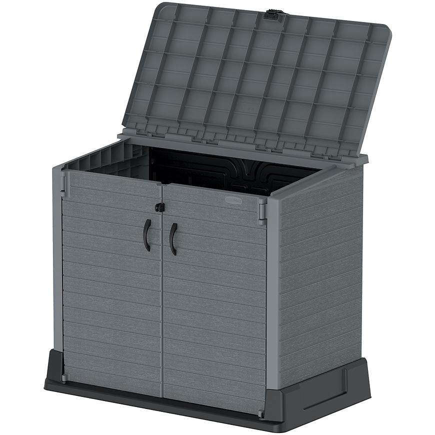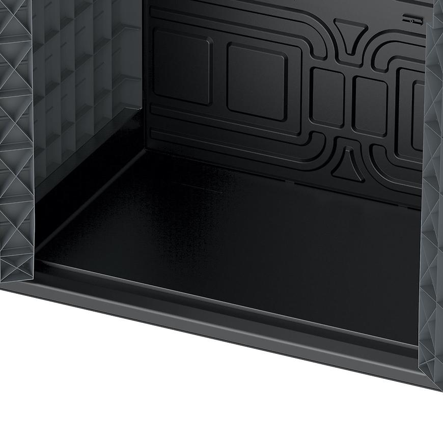 W komplecie z skrzynią znajduje się panel podłogowy, co zapewnia dodatkową stabilność i ochronę przechowywanych przedmiotów. Dodatkowe zamknięcie zabezpiecza zawartość skrzyni przed przypadkowym otwarciem, a wbudowany wspornik półki umożliwia łatwe organizowanie przechowywanej zawartości.