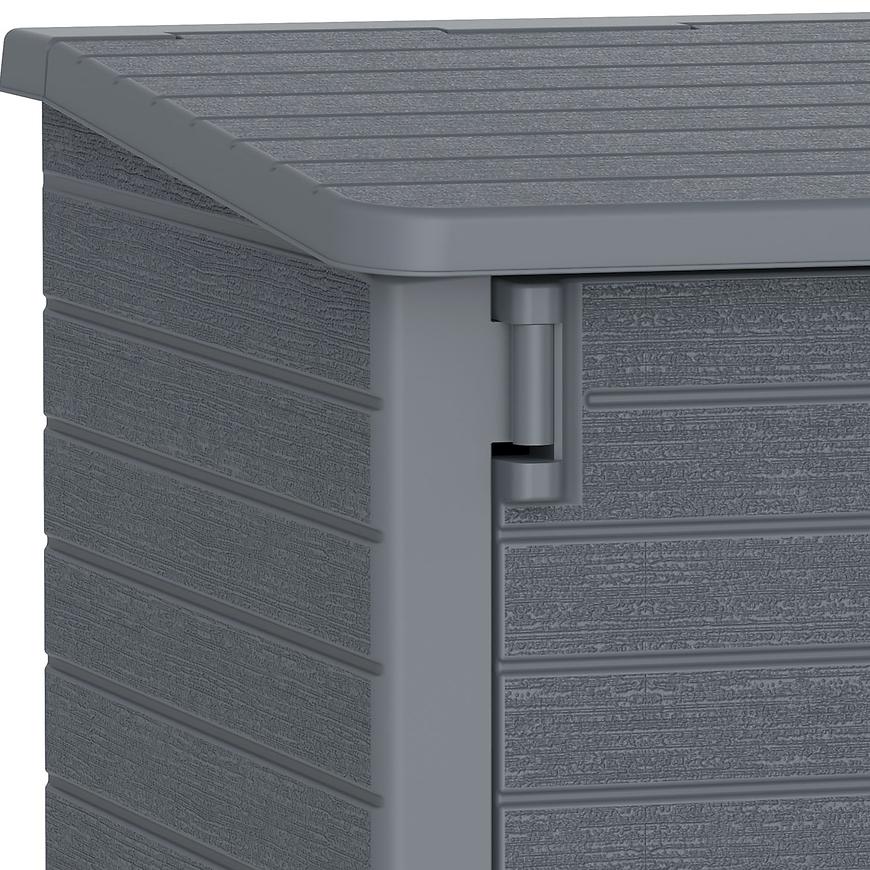 Materiał, z którego wykonana jest skrzynia, nie tylko imituje naturalne drewno, ale także charakteryzuje się odpornością na szkodliwe działanie owadów, pleśni i rdzy. To sprawia, że skrzynia utrzymuje swoją atrakcyjną prezencję przez długi czas, jednocześnie nie wymagając malowania czy specjalnej konserwacji.