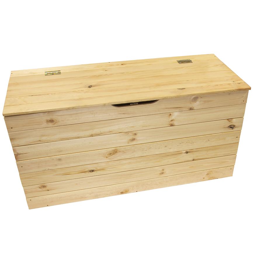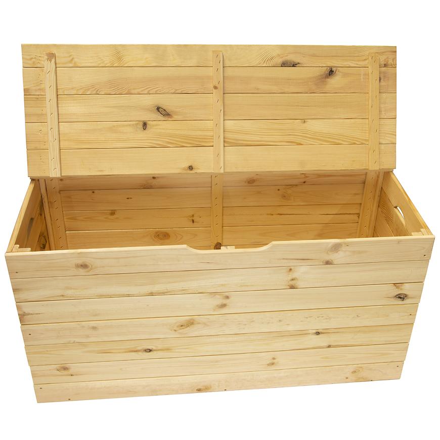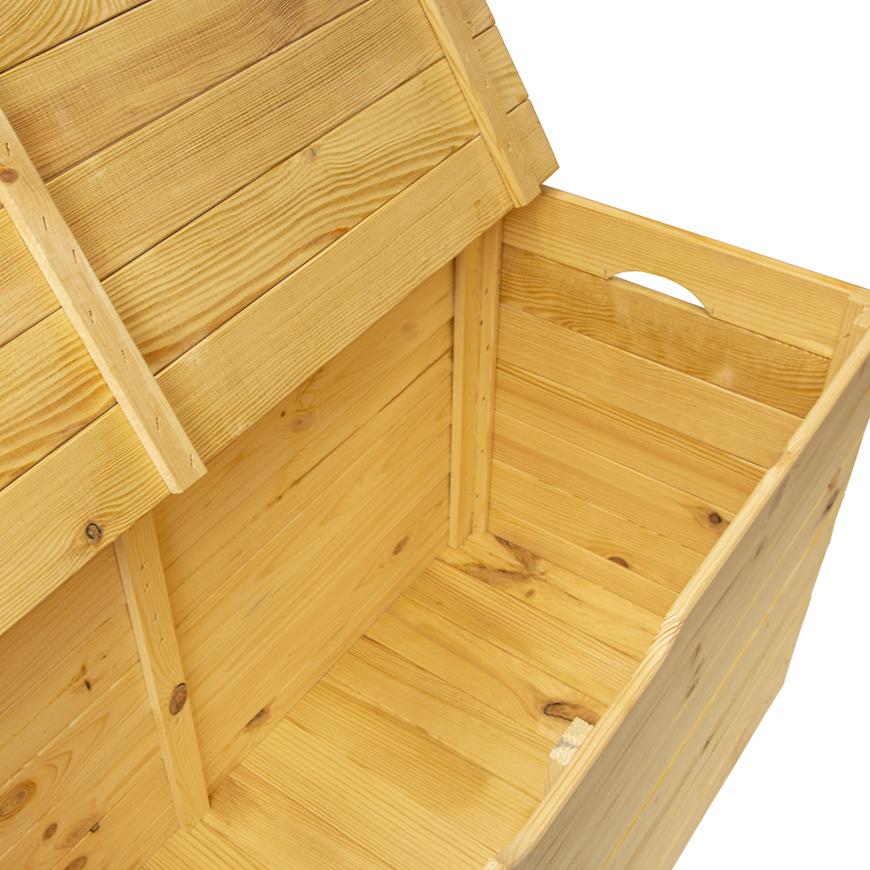 Materiał wykonania - sosna, nadaje skrzyni naturalny kolor, który doskonale komponuje się z otoczeniem ogrodu. Nośność wynosząca 50 kg sprawia, że skrzynia nie tylko pomieści sporo przedmiotów, ale również utrzyma je w bezpieczeństwie.