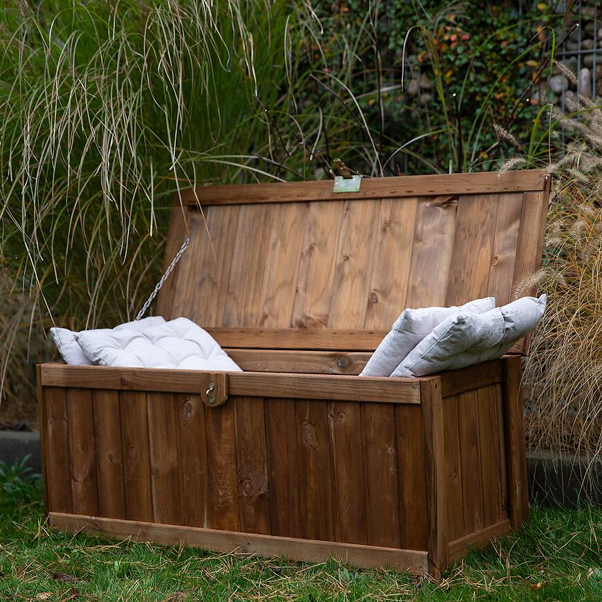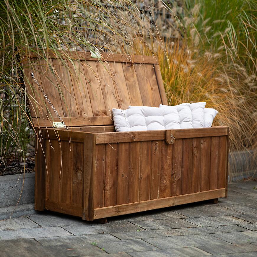 Praktyczna skrzynia ogrodowa wykonana z naturalnej sosny to idealne rozwiązanie dla każdego, kto ceni porządek i estetykę w ogrodzie. Dzięki solidnej konstrukcji i pojemności 180 litrów, skrzynia pomieści narzędzia ogrodowe, poduszki na meble czy akcesoria do grillowania, zapewniając wygodny i bezpieczny sposób przechowywania. Jej wymiary – szerokość 89 cm, głębokość 44 cm i wysokość 48,2 cm – sprawiają, że doskonale sprawdzi się zarówno przy tarasie, jak i w innych częściach ogrodu. Naturalny brązowy kolor w połączeniu z drewnianą strukturą sosny nadaje skrzyni elegancki, ponadczasowy wygląd, który harmonijnie wpisuje się w każdą przestrzeń zewnętrzną. To nie tylko praktyczny mebel ogrodowy, ale także stylowy element dekoracyjny, który podkreśli charakter Twojego ogrodu.