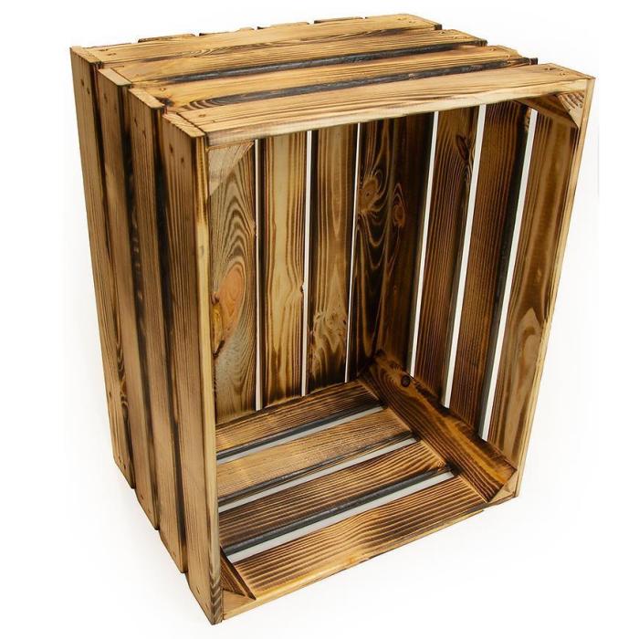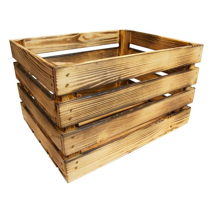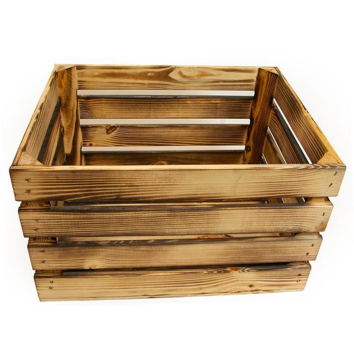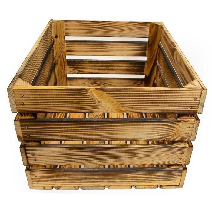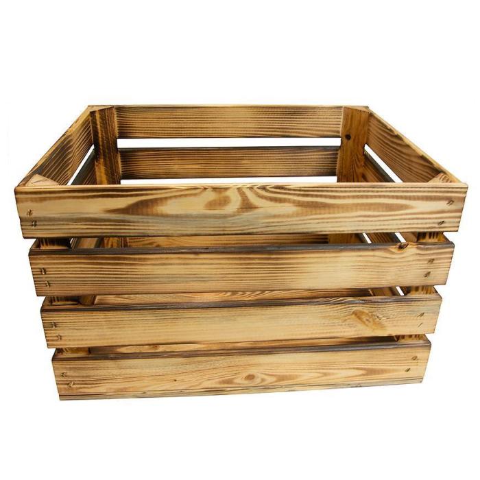 Skrzynka drewniana opalana "L" w rozmiarze 50x40x30 cm wykonana z drewna w kolorze brązowym.