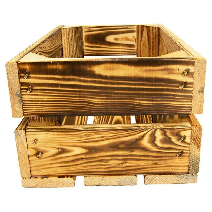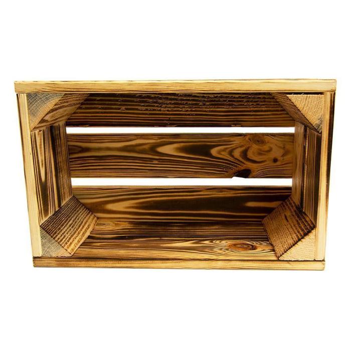 Inspiracje Skrzynka drewniana opalana "S" w rozmiarze 32x20x14 cm wykonana z drewna w kolorze brązowym.