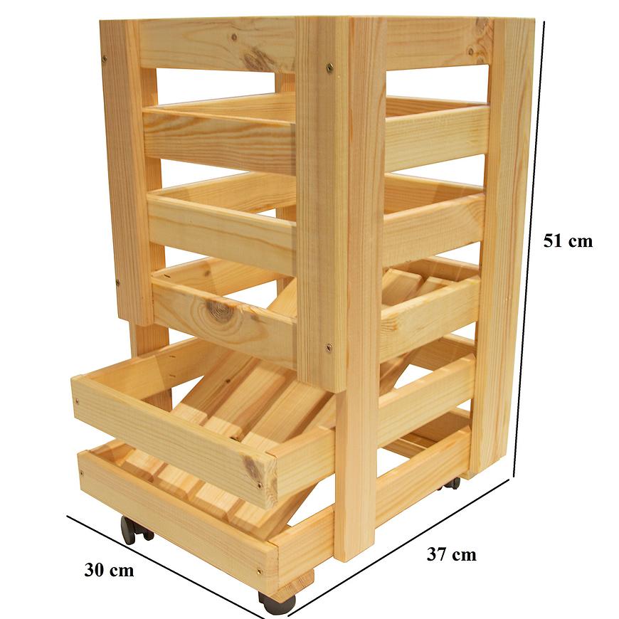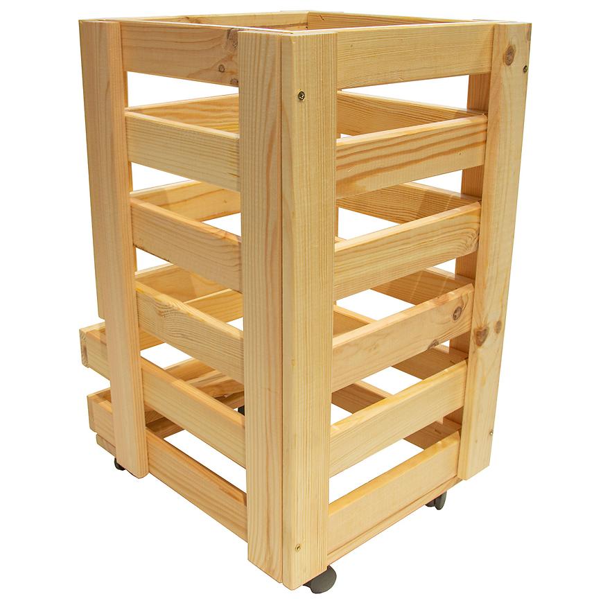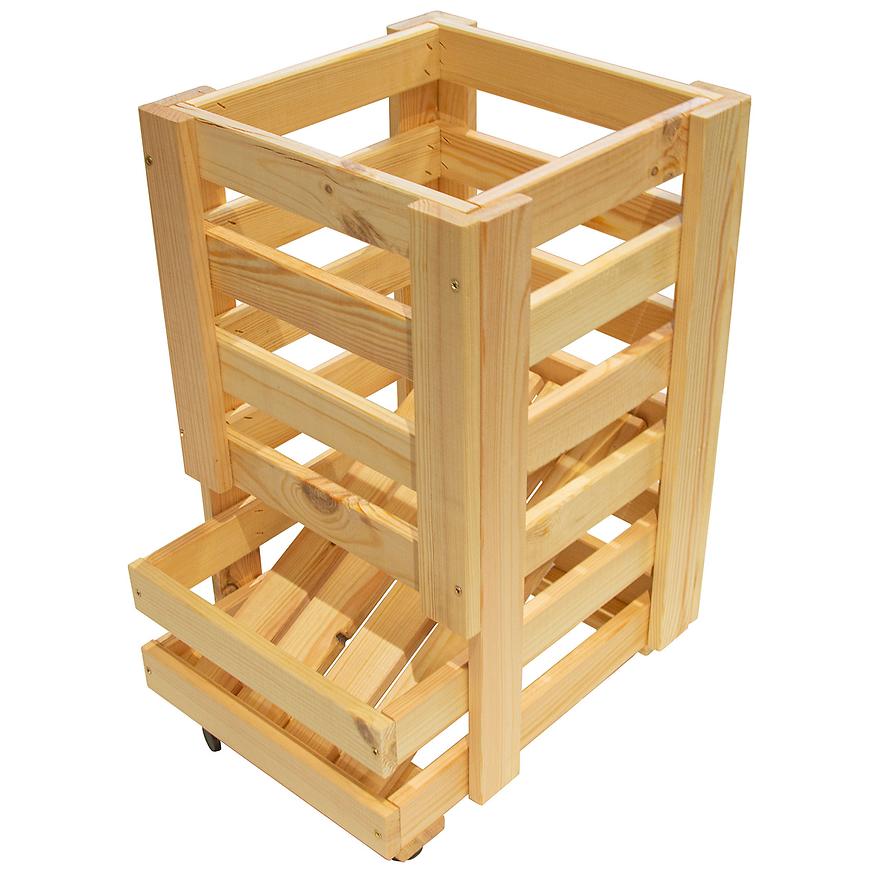 Skrzynka na ziemniaki w kolorze sosny to praktyczne i estetyczne rozwiązanie do przechowywania warzyw w Twojej kuchni lub spiżarni. Wykonana z naturalnego drewna, mała skrzynka ma wymiary 30 cm szerokości, 37 cm głębokości i 51 cm wysokości, co czyni ją idealną do przechowywania mniejszych ilości ziemniaków.