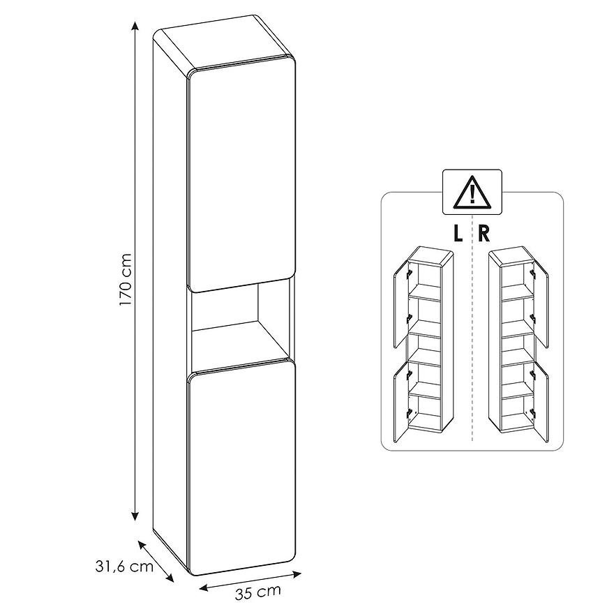 Słupek Aruba C25 2D0S ma imponujące wymiary, które przekładają się na jego użyteczność. Z jego wysokością wynoszącą 170 cm, szerokością 25 cm i głębokością 39 cm, oferuje dużo miejsca na różnorodne przedmioty, bez zajmowania zbyt wiele miejsca w pomieszczeniu. Dodatkowo, dzięki swojej konstrukcji, słupek jest łatwy w montażu, jako szafka podwieszana, co umożliwia optymalne wykorzystanie przestrzeni.