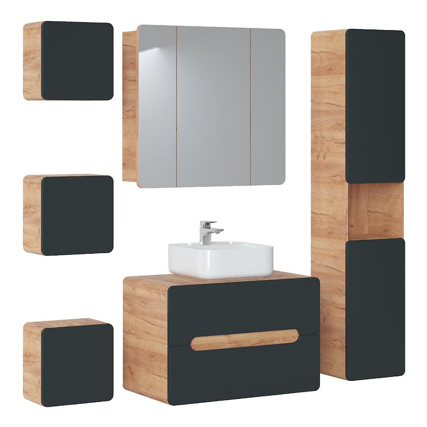 Kolor frontu utrzymany jest w klasycznym odcieniu czerni, która pasuje do wielu różnych aranżacji wnętrz, dodając im charakteru. Korpus w dekore dąb kraft dodaje ciepła i naturalnego uroku.