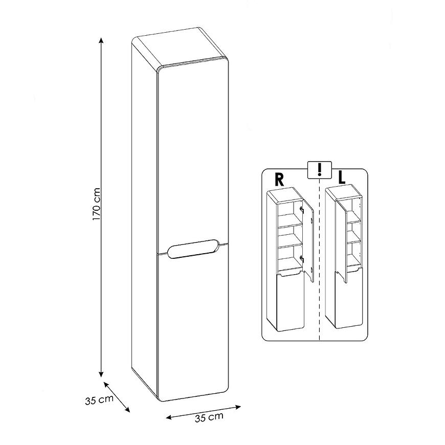 Słupek Aruba z koszem wyróżnia się swoimi wymiarami, które sprawiają, że idealnie komponuje się z różnymi aranżacjami wnętrz. Jego wysokość wynosząca 170 cm, szerokość 35 cm i głębokość 35 cm pozwalają na wykorzystanie go jako efektywne rozwiązanie do przechowywania, bez zajmowania zbyt wiele miejsca w pomieszczeniu. Szafka podwieszana umożliwia montaż na ścianie, co pozwala zaoszczędzić cenną powierzchnię podłogi.