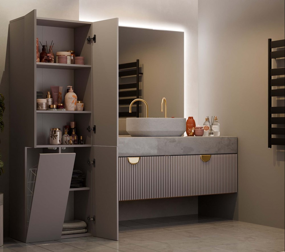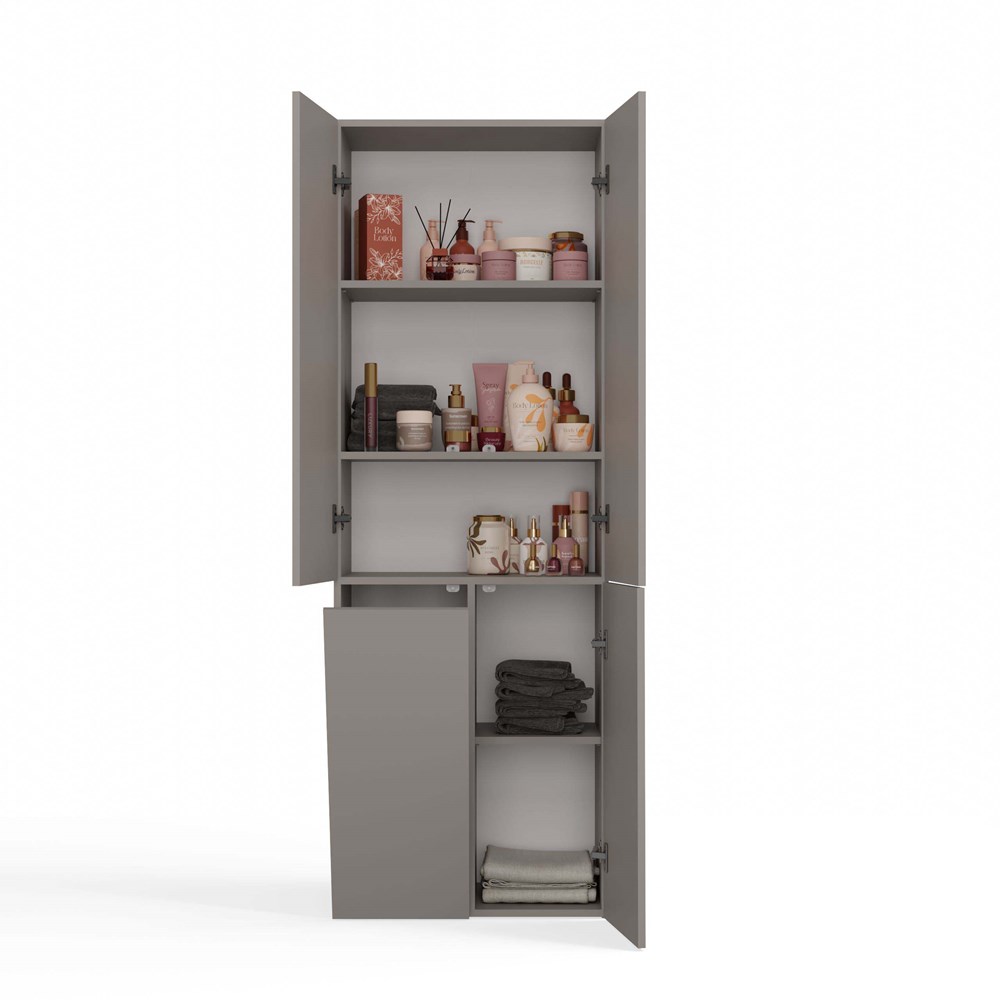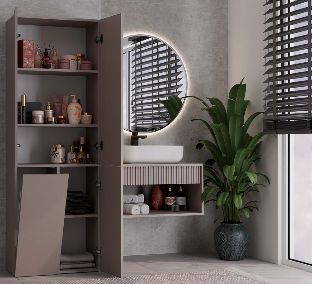 Praktyczne słupki, które wyposażone są w długie drzwi oraz jeden pojemny kosz, pomagają skutecznie zapanować nad bałaganem, nie zajmując przy tym zbyt wiele przestrzeni w łazience. Dzięki nim, Twoje łazienkowe akcesoria znajdą swoje własne, uporządkowane miejsce, a wnętrze pozostanie schludne i estetyczne.
