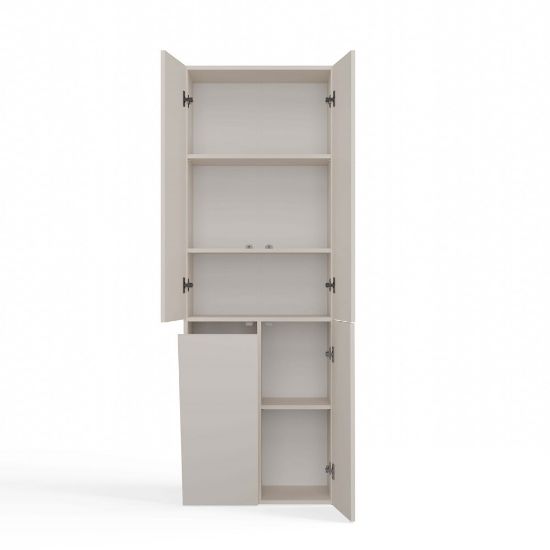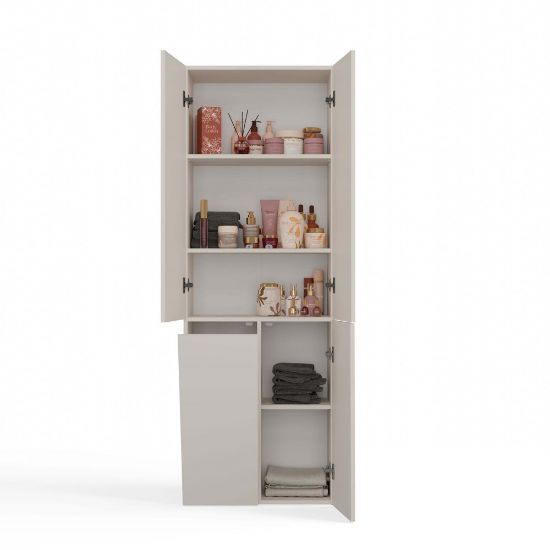 Praktyczne słupki, które wyposażone są w długie drzwi oraz jeden pojemny kosz, pomagają skutecznie zapanować nad bałaganem, nie zajmując przy tym zbyt wiele przestrzeni w łazience. Dzięki nim, Twoje łazienkowe akcesoria znajdą swoje własne, uporządkowane miejsce, a wnętrze pozostanie schludne i estetyczne.