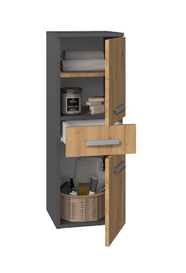 Podsumowując, Szafka Łazienkowa Regał Słupek Pojedynczy z szufladą i 2 drzwiami to doskonały wybór dla osób poszukujących praktycznego i estetycznego rozwiązania do swojej łazienki. Oferuje ona wygodę, funkcjonalność oraz możliwość dostosowania do własnych preferencji, tworząc harmonijną przestrzeń do przechowywania rzeczy.
