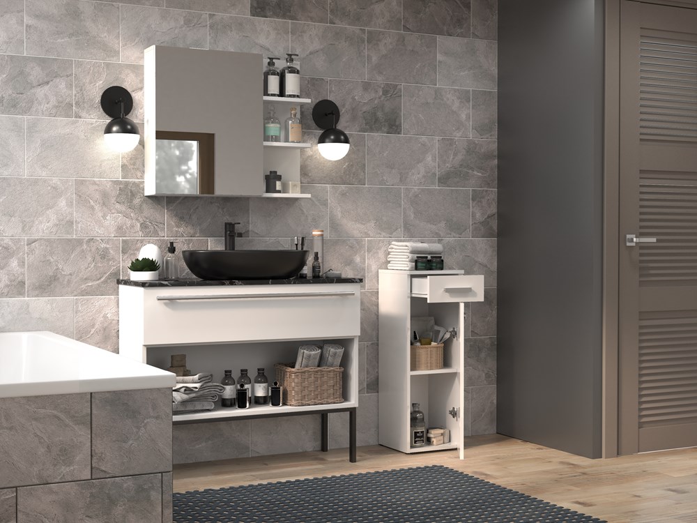 Podsumowując, Szafka Łazienkowa Regał Słupek Pojedynczy z szufladą i 1 drzwiami to doskonały wybór dla osób poszukujących praktycznego i estetycznego rozwiązania do swojej łazienki. Oferuje ona wygodę, funkcjonalność oraz możliwość dostosowania do własnych preferencji, tworząc harmonijną przestrzeń do przechowywania rzeczy.
