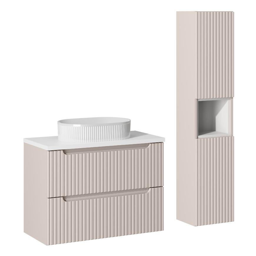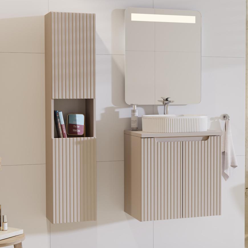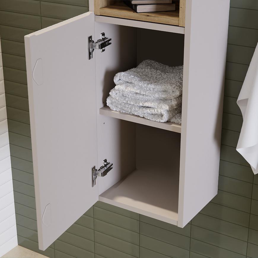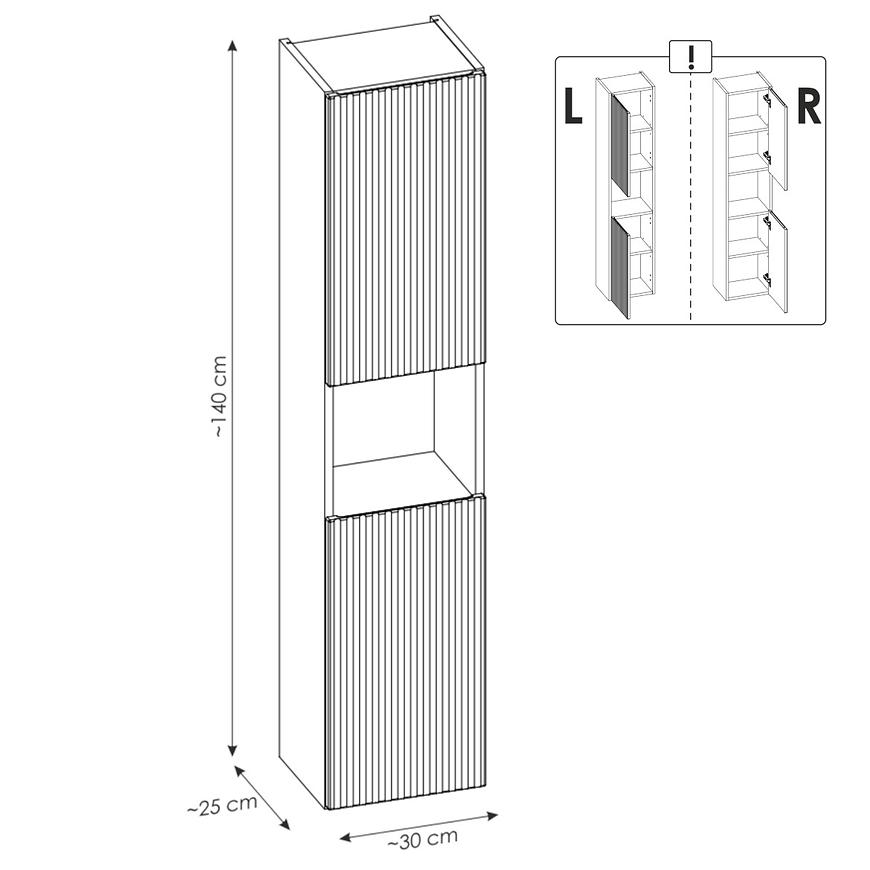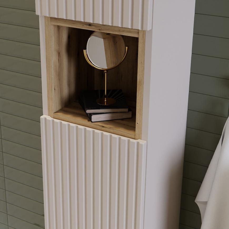 Słupek Nova Cashmere z kolekcji NOVA to nowoczesna i funkcjonalna szafka łazienkowa, zaprojektowana z myślą o wygodzie i estetyce. Fronty wykonane z płyty MDF pokrytej folią PCV oraz korpus z płyty wiórowej wykończonej laminatem gwarantują trwałość i łatwe utrzymanie czystości. Wersja 2-drzwiowa z systemem samodomykania podnosi komfort codziennego użytkowania, a podwieszany montaż dodaje lekkości całej konstrukcji. Smukła forma o wysokości 140 cm, szerokości 30 cm i głębokości 25 cm doskonale sprawdzi się nawet w mniejszych łazienkach, a elegancki odcień cashmere nada wnętrzu subtelny, nowoczesny charakter.