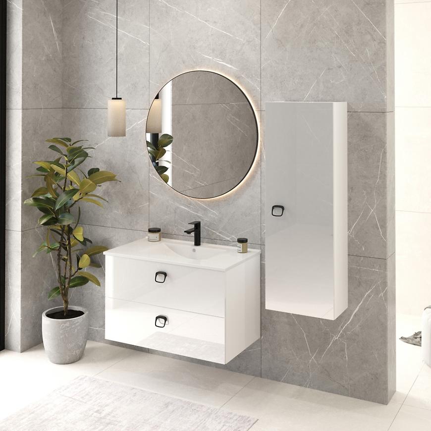 Front słupka Teone został starannie wykończony lakierem, co nadaje mu nie tylko gładkość, ale także subtelny, nowoczesny blask. Biała kolorystyka frontu dodaje wnętrzu lekkości i sprawia, że słupek doskonale komponuje się z różnorodnymi aranżacjami łazienek.