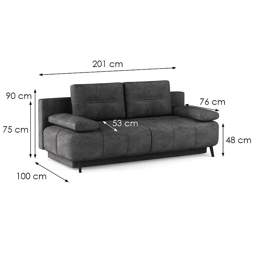 Sofa została wyposażona w funkcję spania z wygodnym mechanizmem rozkładania typu DL, co pozwala na szybkie i łatwe przekształcenie jej w łóżko o powierzchni spania 138x197 cm – idealne dla dwóch osób. Wypełnienie ze sprężyny falistej typu B zapewnia odpowiednią elastyczność i komfort snu.