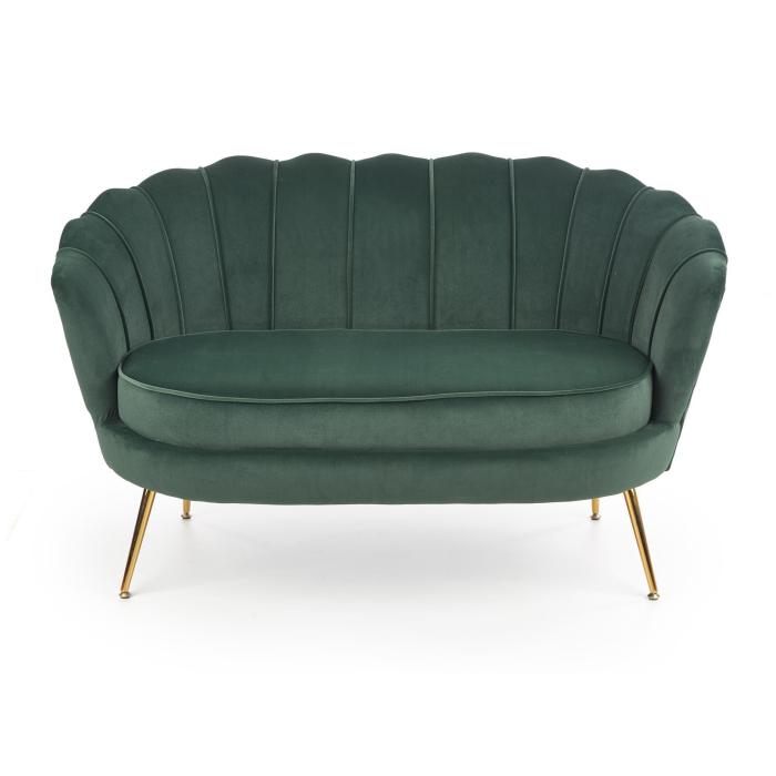 Sofa Amorinito to propozycja skierowana do osób, które cenią sobie połączenie klasyki i elegancji z nowoczesnością. Sofa Amorinito idealnie sprawdzi się podczas długich spotkań rodziny czy znajomych. Sofy bez funkcji spania, które doskonale będą pasować do wnętrz urządzonych niemal w każdym stylu. Na uwagę zasługuje ich oryginalny design – forma i elementy dekoracyjne w postaci ozdobnej lamówki na wewnętrznej stronie oparcia oraz nóżki ze stali chromowanej w kolorze złotym. Całość wykonano z tkaniny welurowej w kolorze ciemno zielonym. To odpowiednie rozwiązanie do wielu salonów, którym potrzeba wyrazistego elementu kolorystycznego. Jest to łatwy sposób na to, aby zmienić i ożywić charakter całego wnętrza.