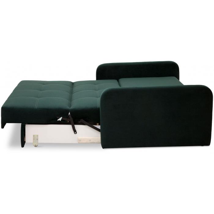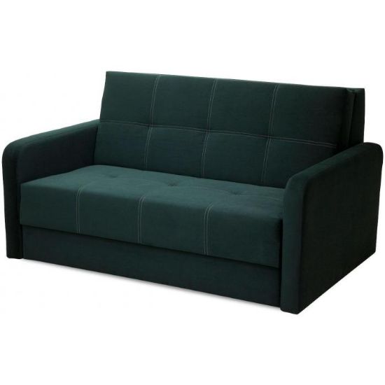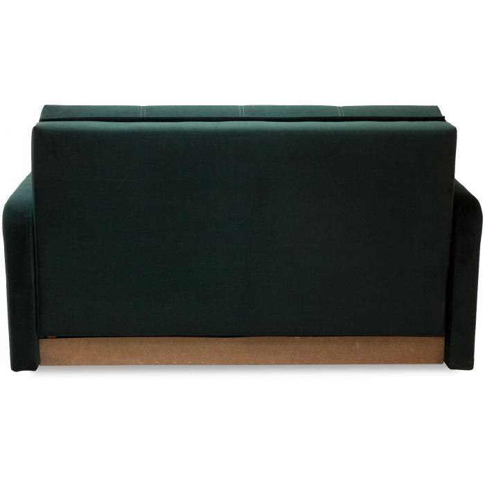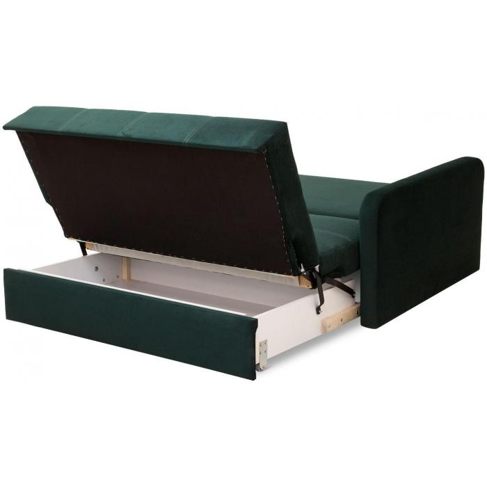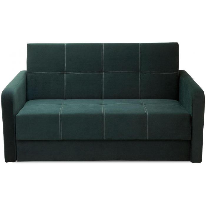 Sofa Arosa wykonana jest w tkaninie Trinity 28 w kolorze zielonym. Dwuosobowa sofa Arosa posiada funkcję spania oraz pojemnikiem na pościel. W siedzisku sofy zastosowano sprężyny faliste i piankę. Sposób rozkładania wózek. Po rozłożeniu otrzymujemy powierzchnia spania o wymiarach 137x190 cm. Jako element dekoracyjny zostały zastosowane ozdobne wciągi oraz kontrastowe przeszycia na siedzisku i oparciu sofy. Sofa Arosa dostępna jest w dwóch wersjach kolorystycznych zielonej oraz popielatej. Na czas transportu sofa pakowana jest w jedną paczkę o wymiarach 140x110x90 cm.