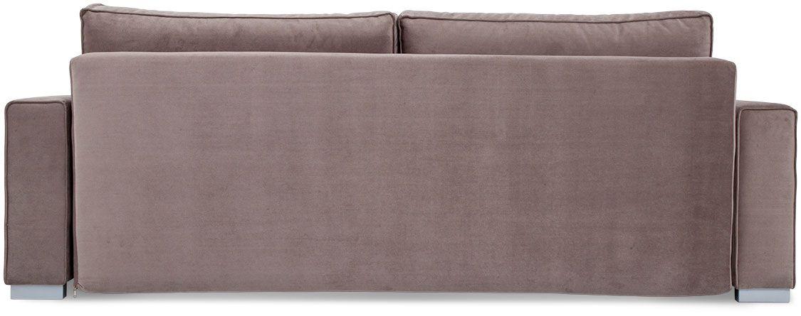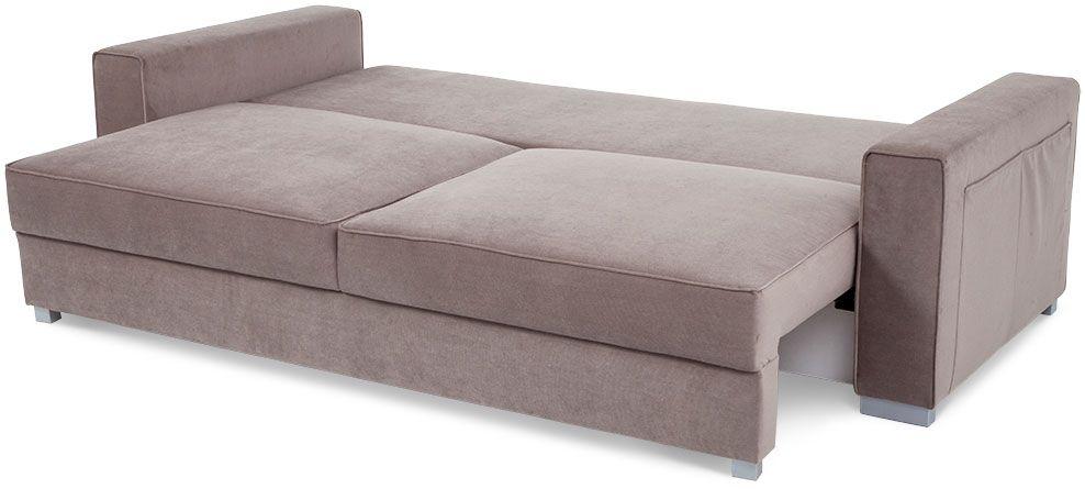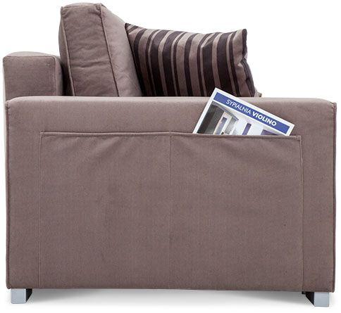 Sofa Bella to inspirujące połączenie walorów praktycznych oraz aranżacyjnych! Do tych pierwszych zalicza się m.in. funkcja spania. Po rozłożeniu sofa Bella ma powierzchnię 153x194 cm, co pozwala na wygodę nocnego wypoczynku dla dwóch osób. Rozkładana sofa Bella posiada również funkcjonalną skrzynię na pościel oraz boczne kieszenie zapinane na zamek. W siedzisku sofy zastosowano sprężyny faliste, a w oparciu znajduje się formatka bonellowa. Jeśli chodzi o walory aranżacyjne, sofa Bella wyróżnia się pięknym beżowym odcieniem tapicerki oraz obecnością dwóch dużych poduszek oparciowych oraz czterech poduszek ozdobnych. Uroku dodają jej błyszczące chromowane nóżki. To idealna sofa do salonu, jadalni, a nawet pokoju młodzieżowego!